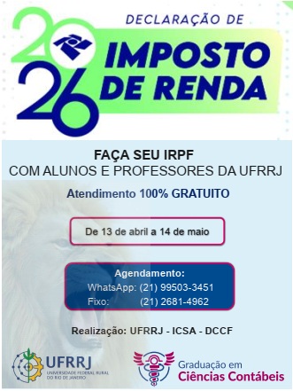 O Projeto “Elaboração e Apresentação da Declaração do Imposto de Renda Pessoa Física 2026”, conduzido pelo Departamento de Ciências Contábeis e Finanças da UFRRJ vai começar!