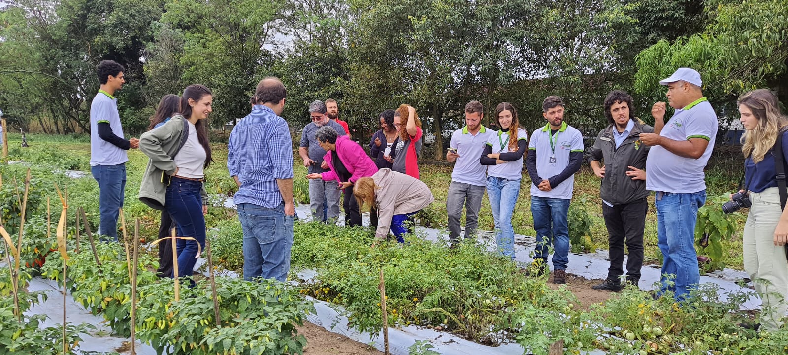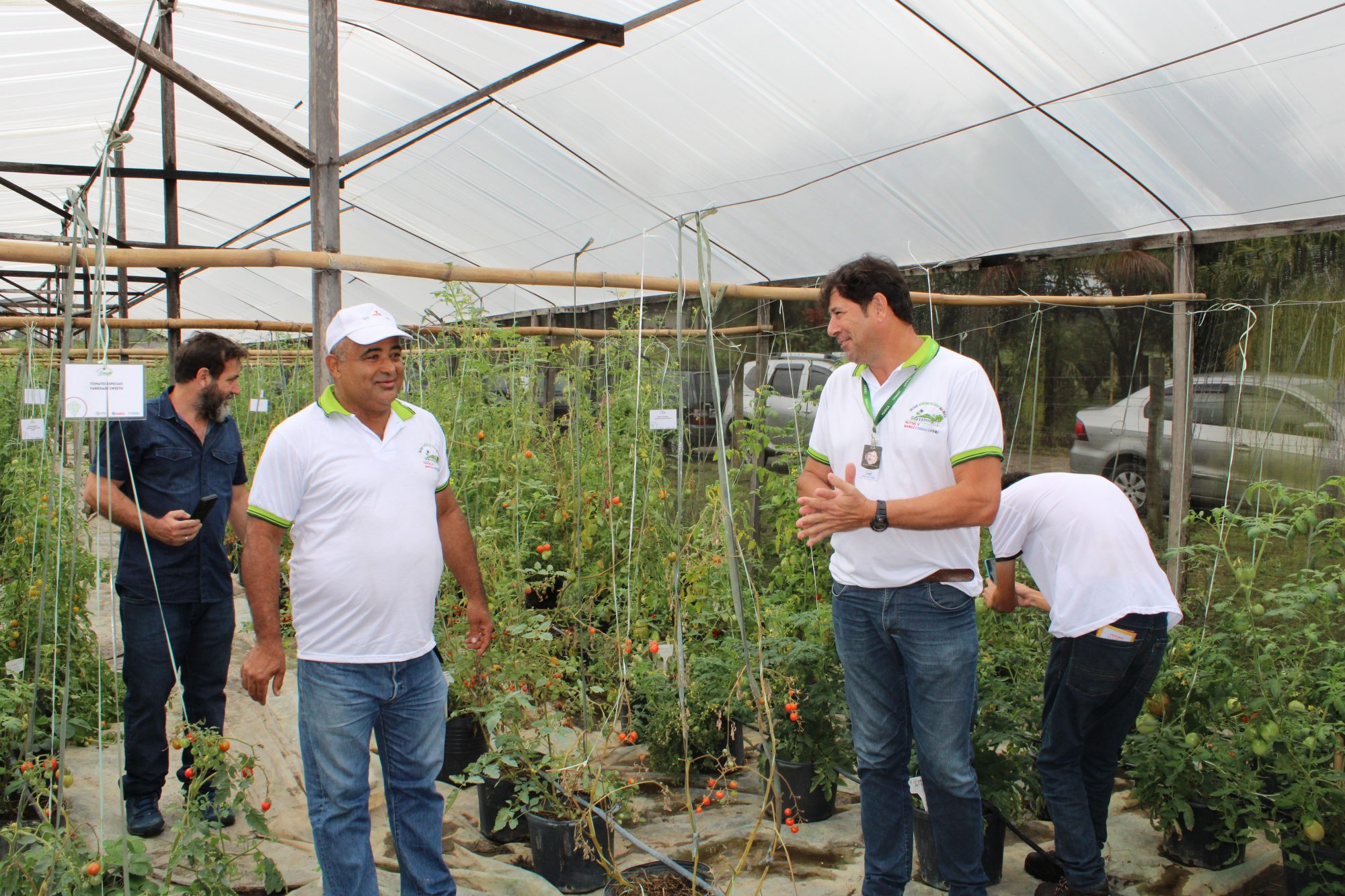 Durante o Dia de Campo, os participantes foram divididos em grupos. Em sistema de rodízio, cada agrupamento passou por todas as quatro estações do setor: estufa de tomates, canteiro de tomates, canteiro de pimentas e propagador de mudas.