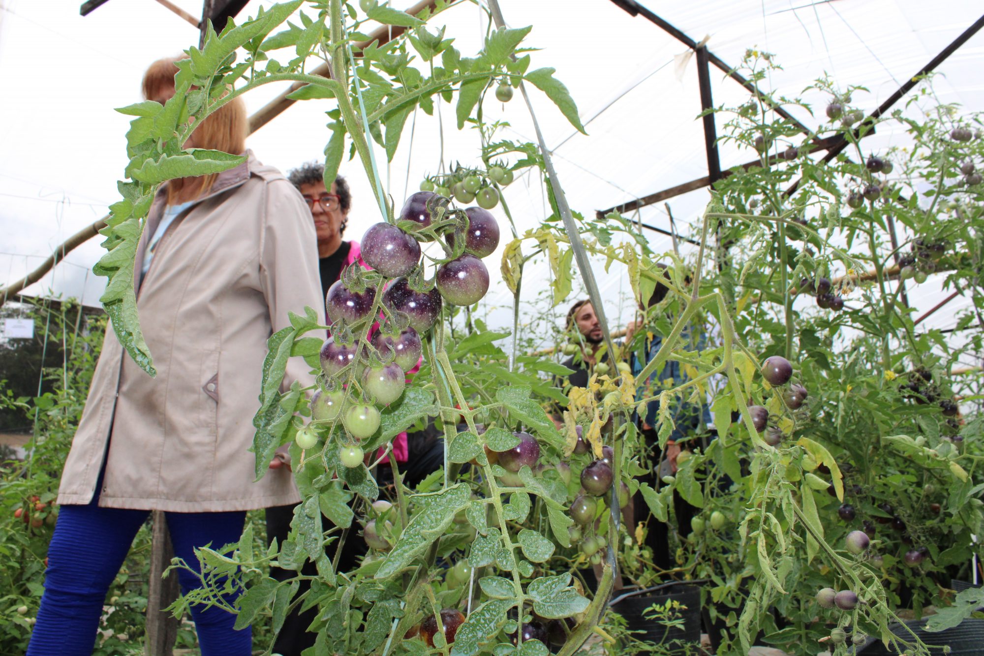 Já no canteiro de tomates, cultivados em área aberta, Abboud apresentou tomates plantados a partir da desbrota das espécies cultivadas em área coberta (estufa), explicando como é feita a técnica e suas vantagens na produção agroecológica. Neste mesmo espaço, os participantes puderam conhecer o plantio de pimentas. A professora Margarida Goréte Ferreira do Carmo fez uma exposição sobre as quatro variedades de pimentas especiais plantadas nos canteiros, falando sobre manejo e plantio, assim como a importância das pimentas na culinária.