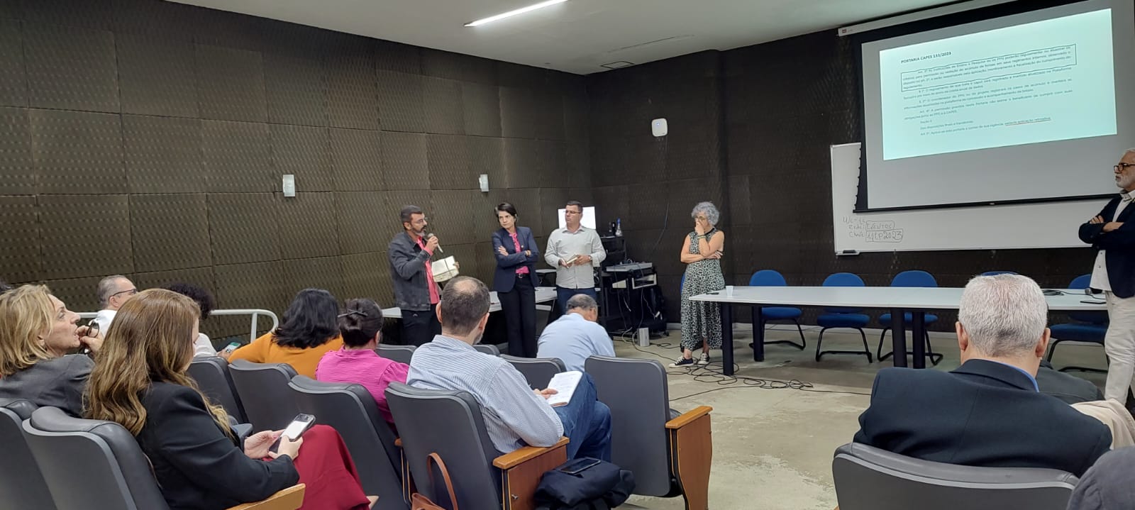 A mesa “Ações e Competências do Instituto Nacional da Propriedade Industrial (Inpi)” contou com o presidente da entidade, Júlio César Castelo Branco Reis. A seguir, aconteceu debate sobre a Portaria Capes nº133/2023, referente ao acúmulo de bolsas.