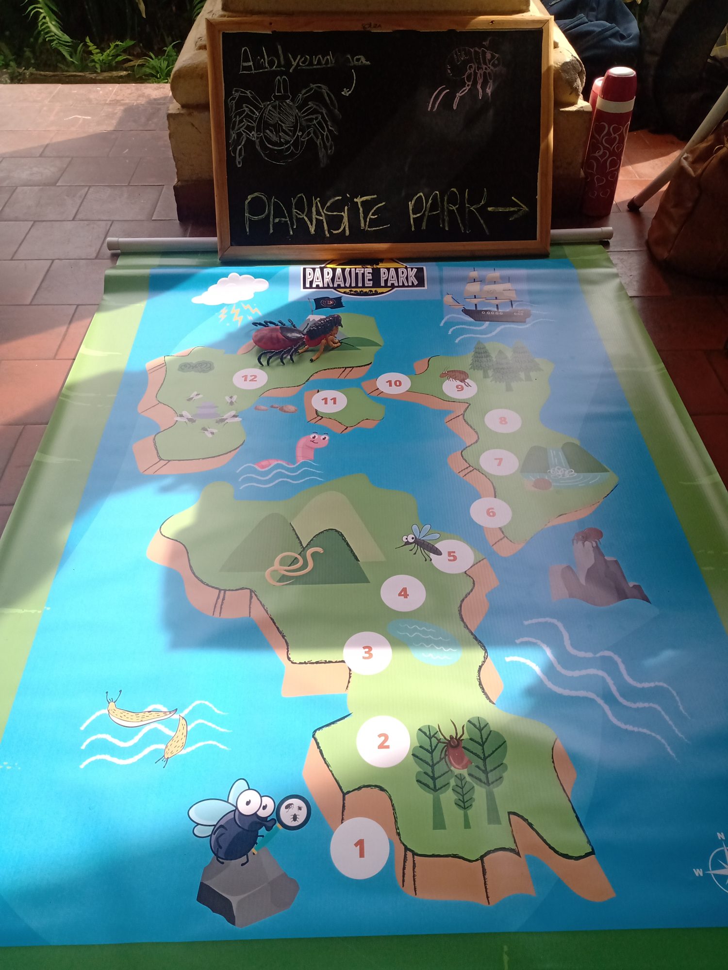 Outra atividade que integrou a oficina foi o “Jogo de Tabuleiro”, realizado em equipes com a temática da parasitologia. Foi uma das atividades que mais estimulou a interação entre os participantes.