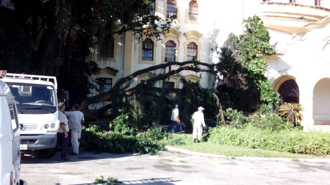 O setor de Conservação de Parques e Jardins da UFRRJ removeu do local os galhos e tronco caídos. Os ventos da madrugada e o solo encharcado pela chuva contribuíram para a queda, mas os motivos ainda serão apurados. Segundo Félix da Costa, chefe do setor, também será realizada uma poda preventiva nas árvores localizadas próximas a que caiu.