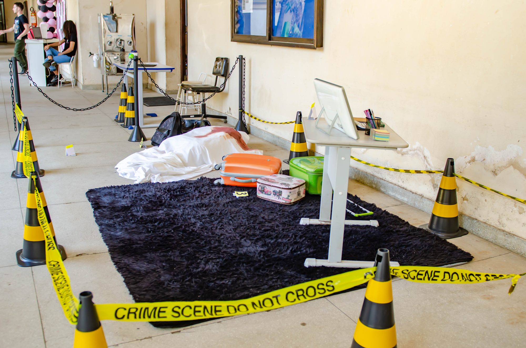 Após coleta e avaliação das provas, os visitantes se reuniam novamente e discutiam quais dos quatro suspeitos havia executado a vítima. A atividade, em quatro sessões nos dias 16 e 17/10, despertou o interesse de 100 estudantes que se inscreveram antecipadamente.