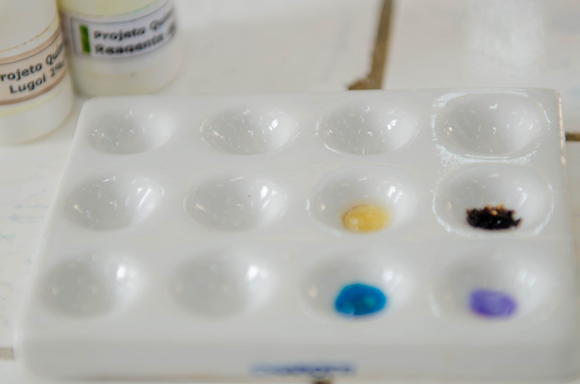 Foi utilizado o Teste de Scott, que é um método colorimétrico utilizado para identificar a presença de cocaína em amostras. O teste consiste na adição de reagente rosa (tiocianato de cobalto), que, ao reagir com a cocaína, forma uma coloração azulada; a cor azul indica a presença da substância.