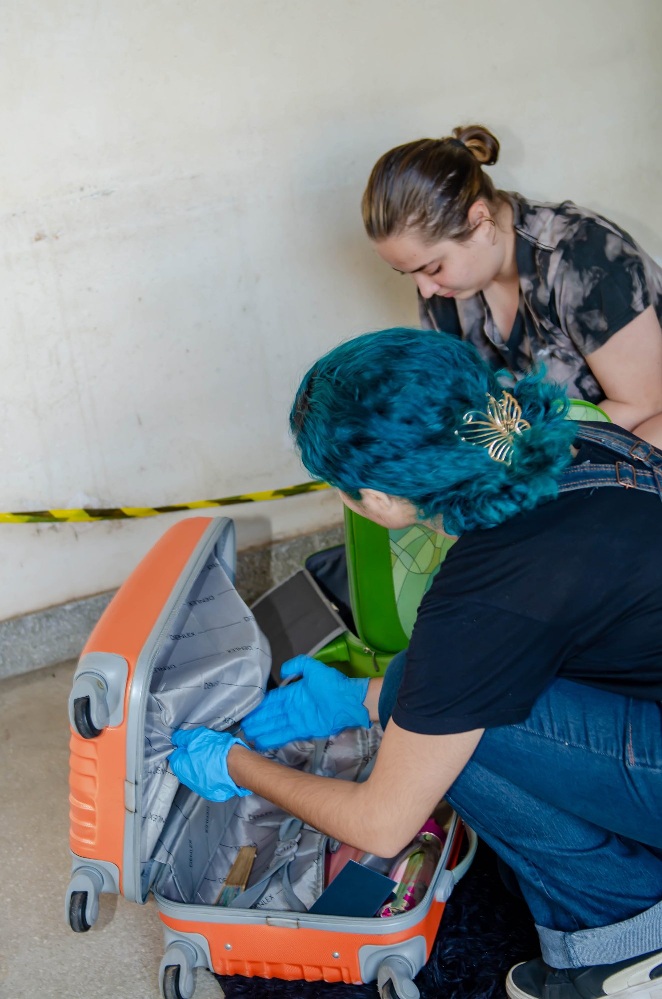 Também avaliaram impressões digitais utilizando o teste de vapor de iodo para revelar as digitais recolhidas em papel de filtro e drogas encontradas nas malas utilizando um simulacro preparado a partir do anestésico lidocaína, amido e fermento químico.