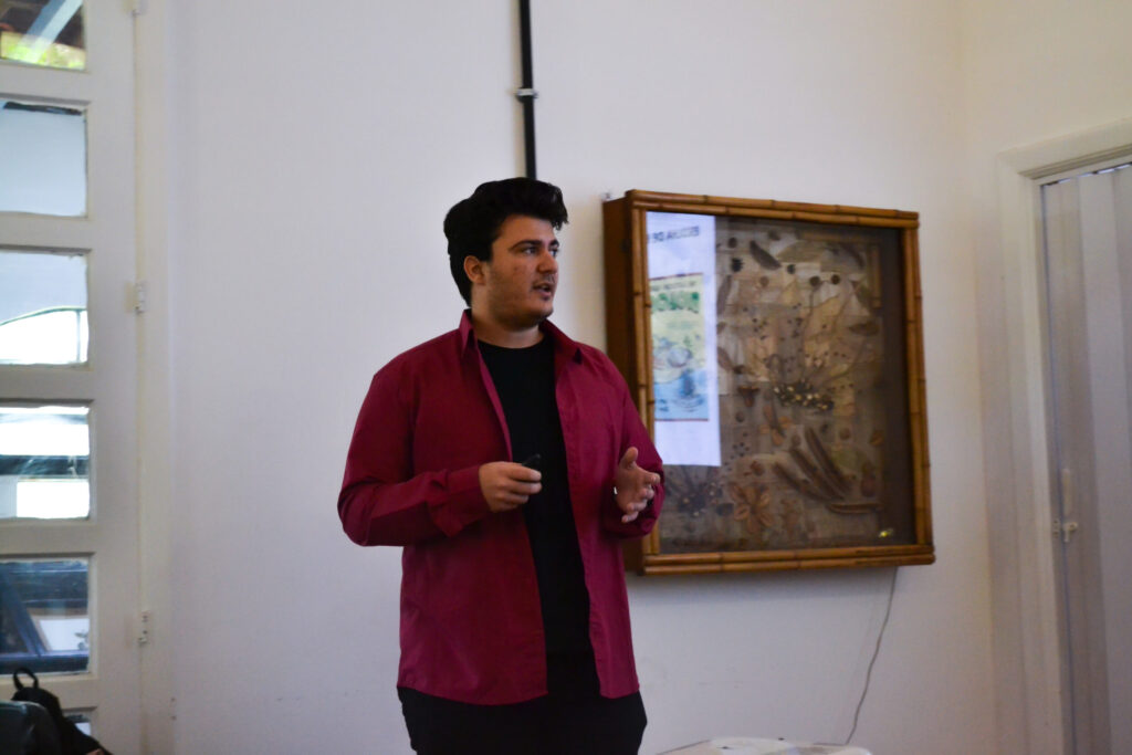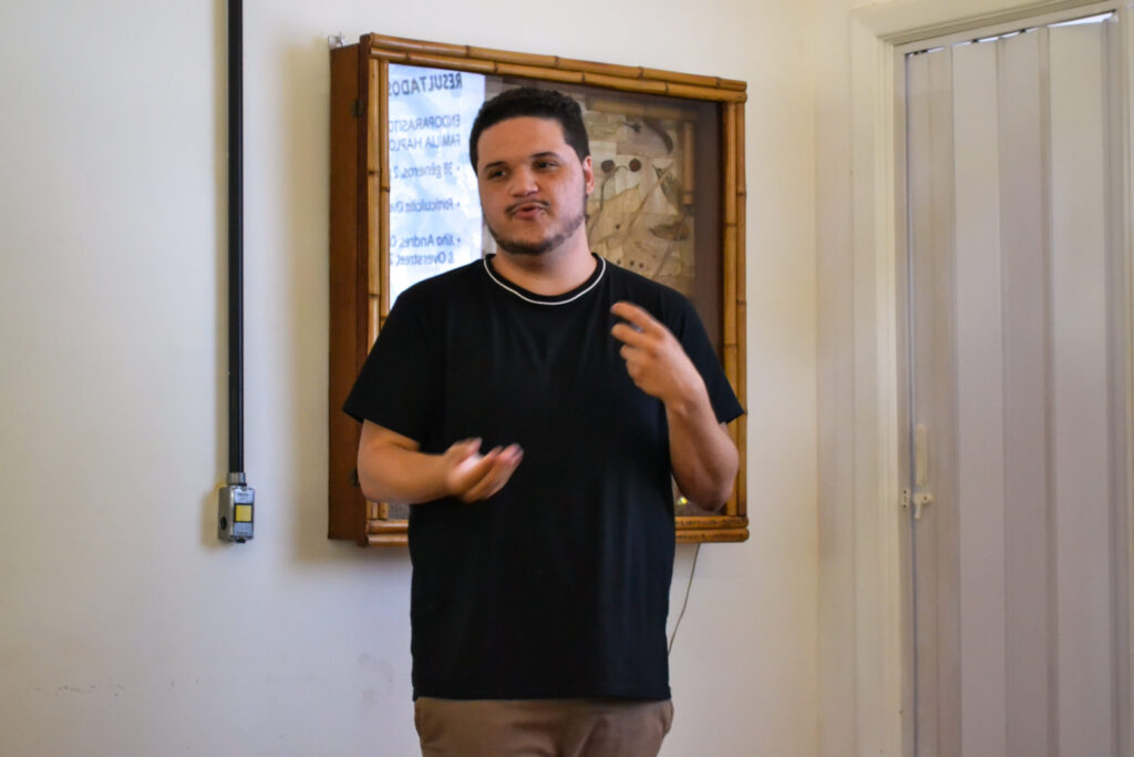 Um dos destaques do dia foi o trabalho do estudante de Belas Artes, Carlos Daniel da Cunha, que apresentou o projeto “Vírus à vista: A capacidade contagiante dos quadrinhos”. Produzindo um documentário científico em formato de HQ, ele relatou como arte e ciência se encontram no processo criativo. “Minha orientadora queria aproximar a virologia da linguagem visual, e eu já trazia a bagagem dos quadrinhos e o interesse pela ciência. As coisas simplesmente se alinharam”, explicou.