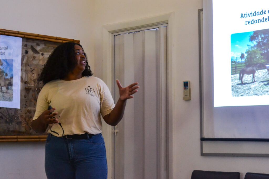 Encerrando o ciclo, Maíza Souto, de Zootecnia, trouxe o estudo “O Cavalo como Facilitador do Autodesenvolvimento Humano”, vinculado ao projeto EQUIlibrium Rural. A pesquisa demonstra os impactos positivos da interação humano-equino na regulação emocional e no desenvolvimento pessoal dos praticantes.
