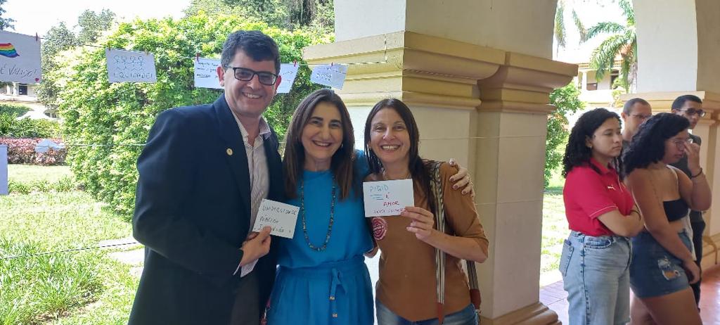 Além de participarem da abertura oficial do evento, o reitor Roberto Rodrigues e a pró-reitora de Extensão Rosa Mendes conheceram de perto algumas das atividades desenvolvidas pela comunidade universitária. Nesta terça-feira (17/10), eles visitaram a Feira de Cursos e a oficina do Pibid Ciências Sociais, ambas realizadas no Pavilhão Central do câmpus Seropédica.