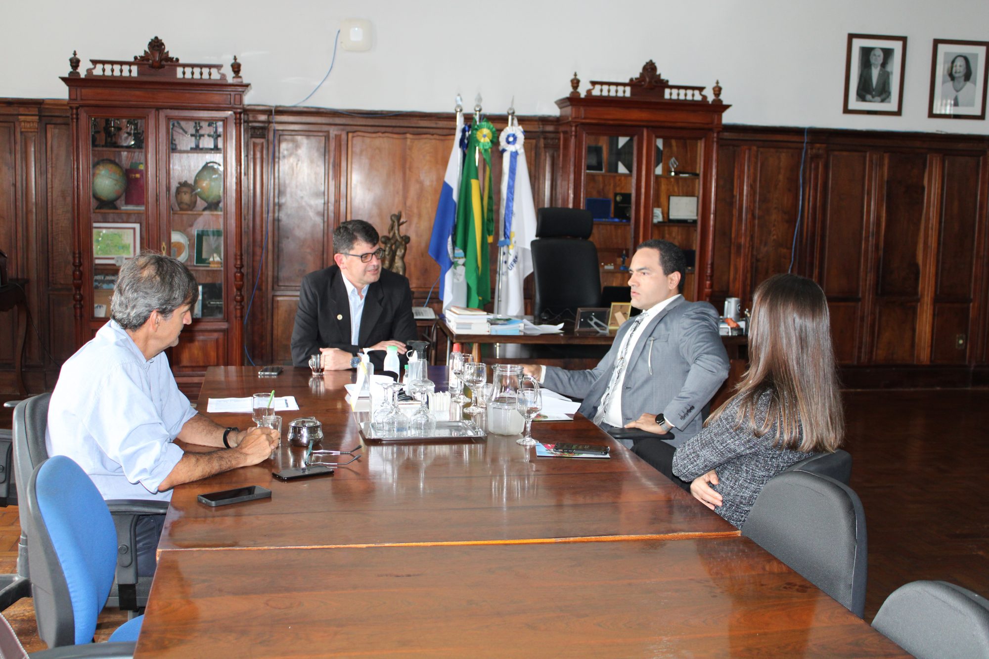 O reitor da UFRRJ Roberto Rodrigues recebeu em seu gabinete, na manhã de sexta-feira (23/9), o auditor-fiscal da Receita Federal e delegado de Alfândega no Porto de Itaguaí, Élcio Ferreto da Silva. De acordo com Rodrigues, foi discutida a possibilidade de a Universidade receber doações de produtos que são interceptados e apreendidos pelos agentes da Alfândega no Porto. Também estiveram em pauta possíveis parcerias acadêmicas entre a Universidade Rural e a Receita.