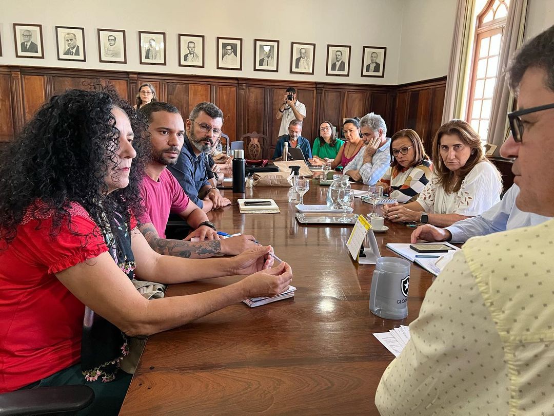 O reitor Roberto Rodrigues, integrantes da Administração Central e representantes estudantis receberam, nesta segunda-feira (8/5), a deputada estadual Lucia Marina dos Santos (PT), a Marina do MST. A reunião, realizada no Gabinete da Reitoria, serviu para articular o diálogo com a parlamentar, que ouviu as demandas da Universidade e delineou possíveis ações conjuntas.