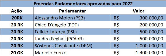 Essa é a primeira etapa de aprovação das emendas, que seguirão para o trâmite de liberação para o orçamento de 2022.