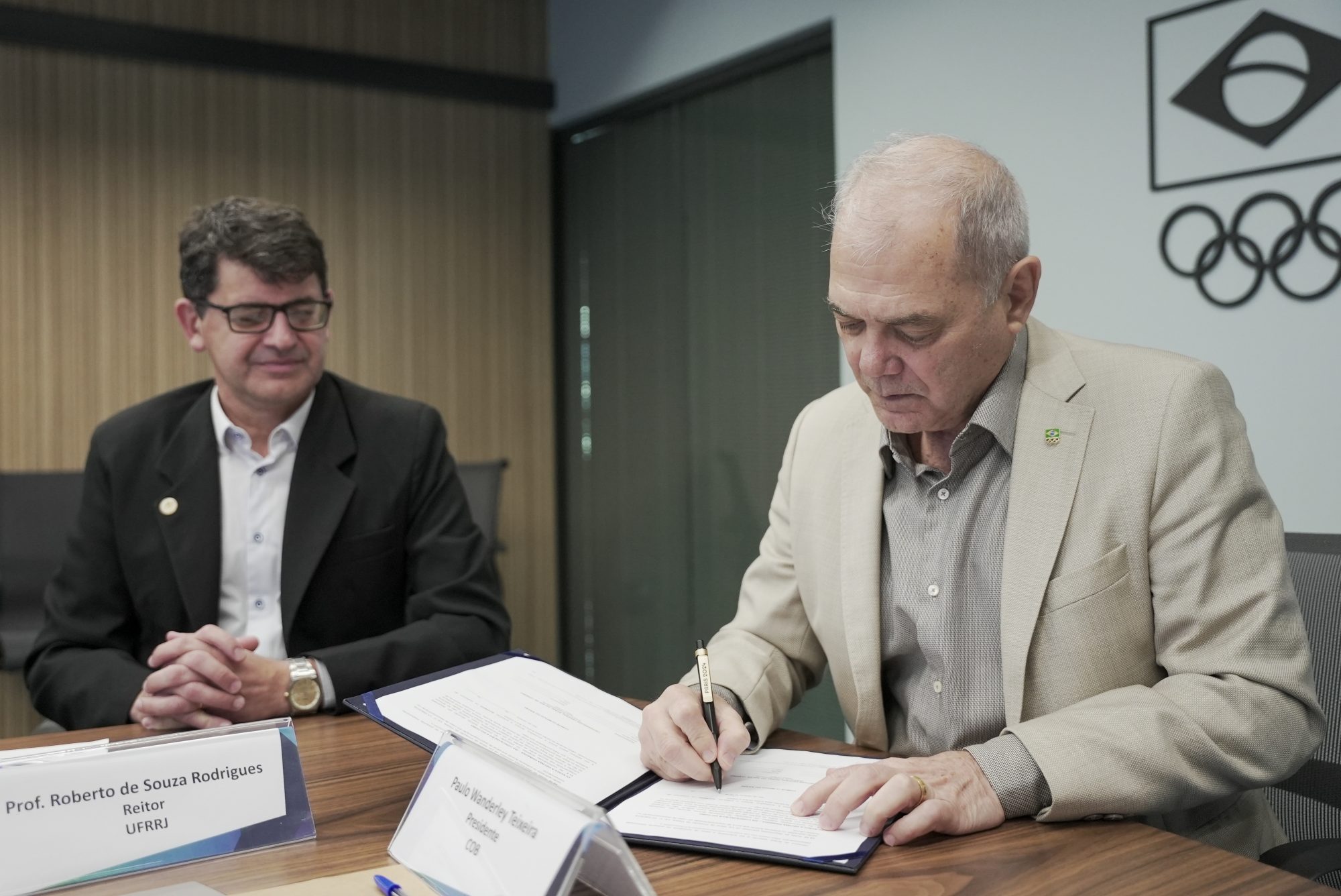 A UFRRJ assinou, na terça-feira (22/8), Acordo de Cooperação com o Comitê Olímpico do Brasil (COB) intitulado “Programa de Educação e Prevenção ao Doping no Esporte Olímpico Brasileiro”. Além do presidente do COB, Paulo Wanderley Teixeira, estiveram presentes pela UFRRJ o reitor Roberto Rodrigues; o pró-reitor de Pesquisa e Pós-graduação José Luis Luque; e os professores Marcelo Zamith (Departamento de Ciência da Computação/IM), Leandro Alvim (Departamento de Ciência da Computação/IM), Filipe Braida (Departamento de Ciência da Computação/IM) e Anderson Luiz Bezerra da Silveira (chefe do Departamento de Educação Física e Desportos).