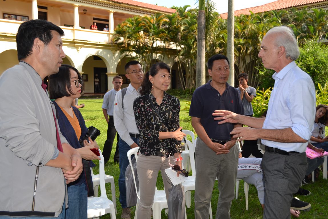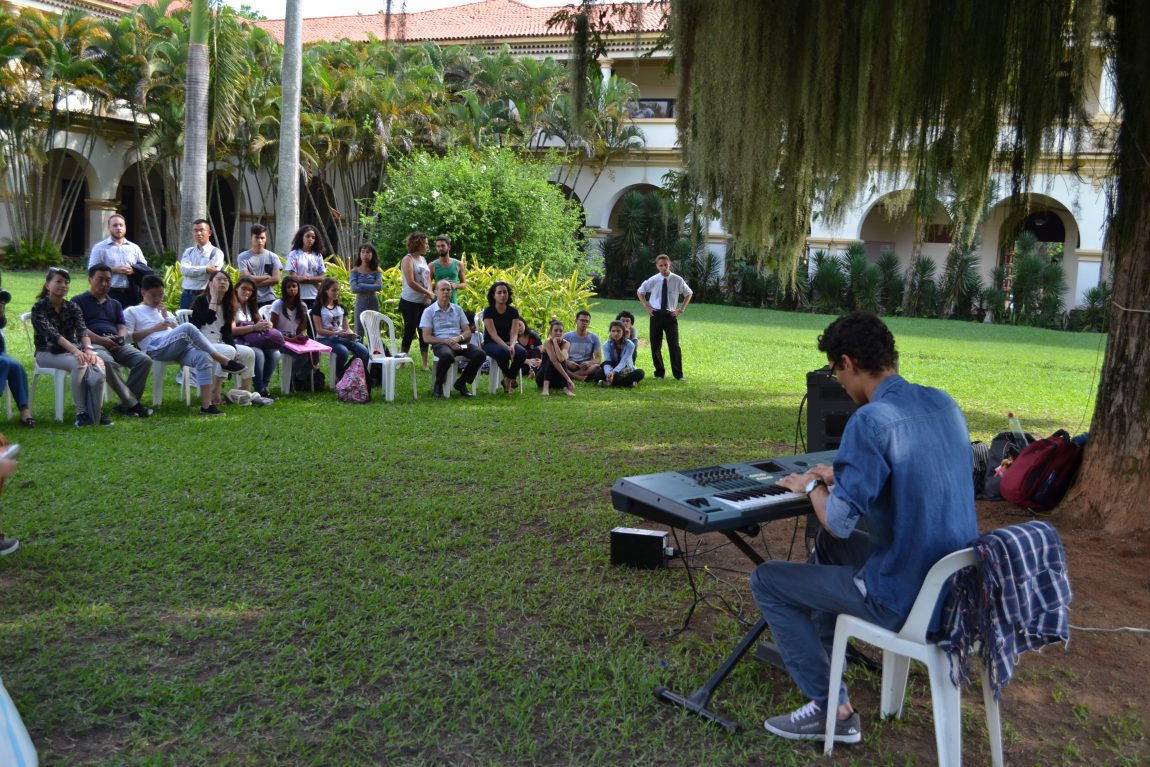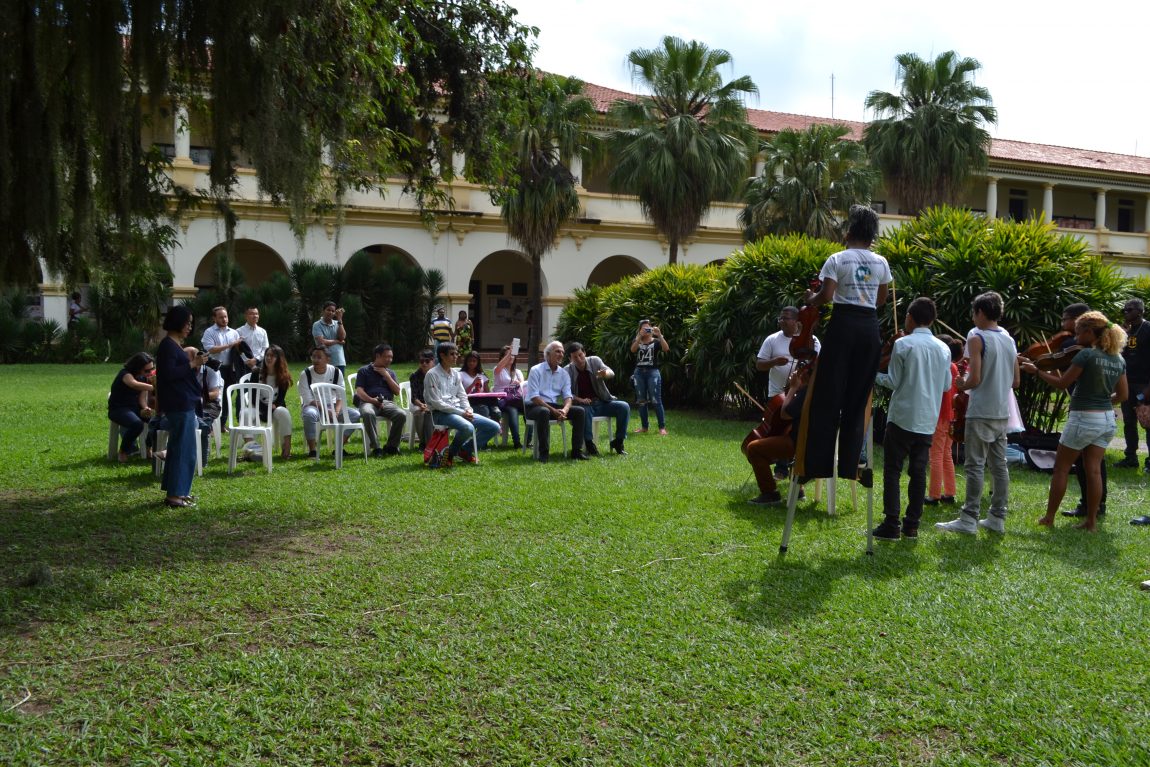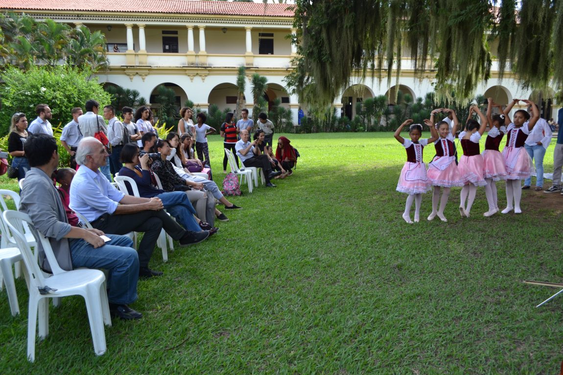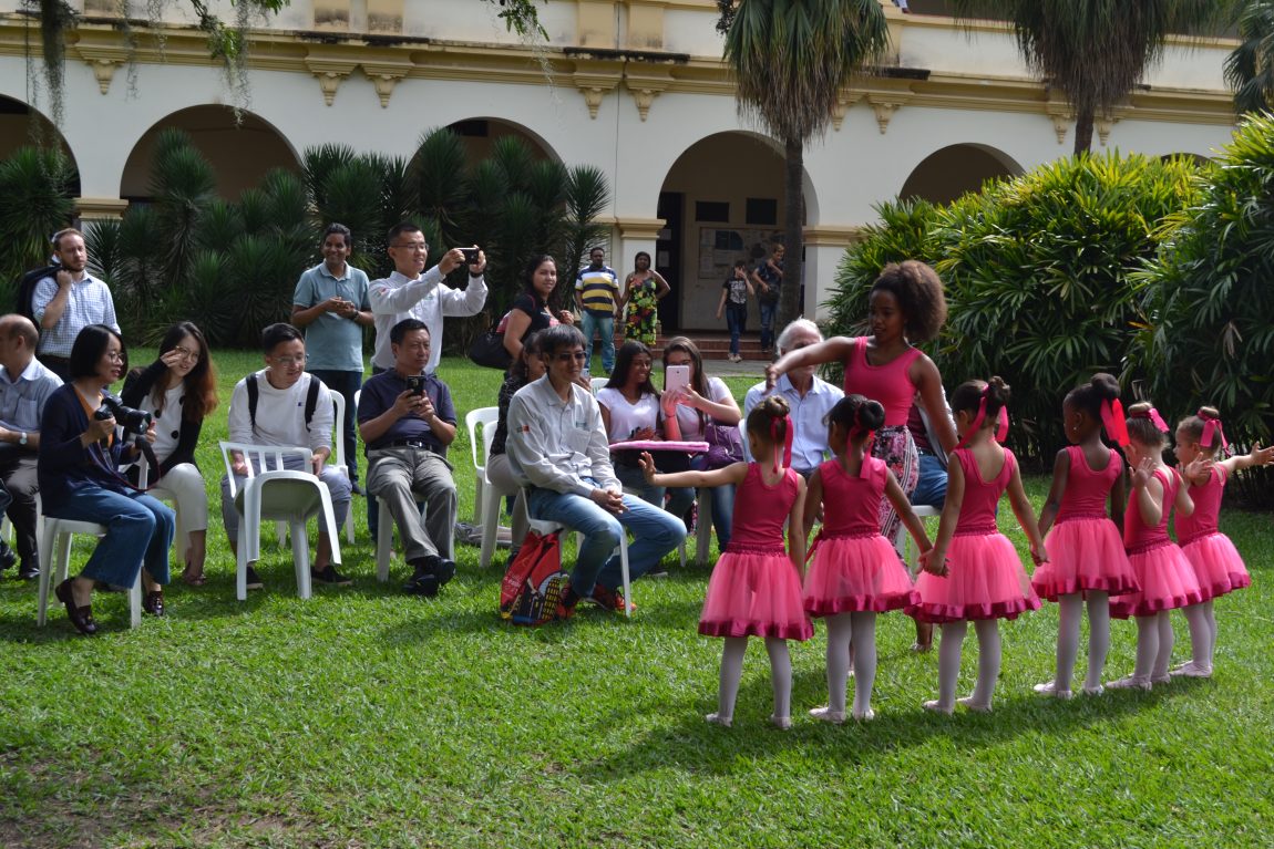 Após reunião no gabinete da Reitoria, a delegação chinesa visitou o Centro de Memória da UFRRJ e conheceu algumas das oficinas promovidas gratuitamente pelo Centro de Arte e Cultura (CAC). As apresentações de dança, percussão de maracatu, piano, tecido acrobático, teatro e da Orquestra Jovem de Itaguaí aconteceram no jardim interno do Pavilhão Central (P1), já que a sede do CAC está fechada temporariamente para reformas.