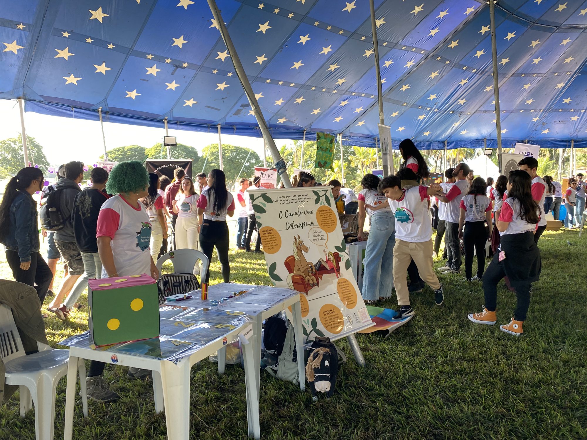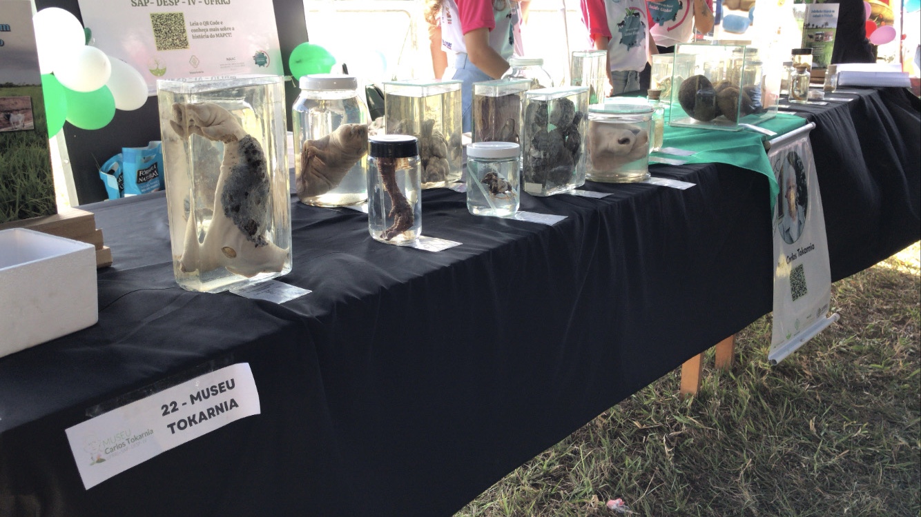 A estudante de Medicina Veterinária da UFRRJ Ana Paula Alves explicou sobre o funcionamento da tenda do Saúde Global no evento. “Aqui a gente tem uma tenda com várias ligas, apresentando o que elas fazem. Por exemplo, temos o pessoal do Museu Tokarnia, apresentando as peças anatômicas e os animais que foram estudados” contou.