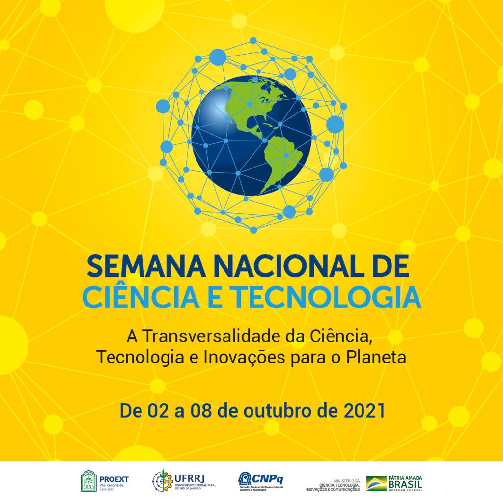 A Semana Nacional de Ciência e Tecnologia 2021 (SNCT) será realizada do dia 2 a 8 de outubro e terá como tema: “A Transversalidade da Ciência, Tecnologia e Inovações para o Planeta”. A edição deste ano será realizada de forma totalmente online e trará diversas atividades, síncronas e assíncronas, para os participantes. O evento tem como objetivo divulgar as produções científicas produzidas dentro da Universidade, de forma acessível, para o público externo e interno.