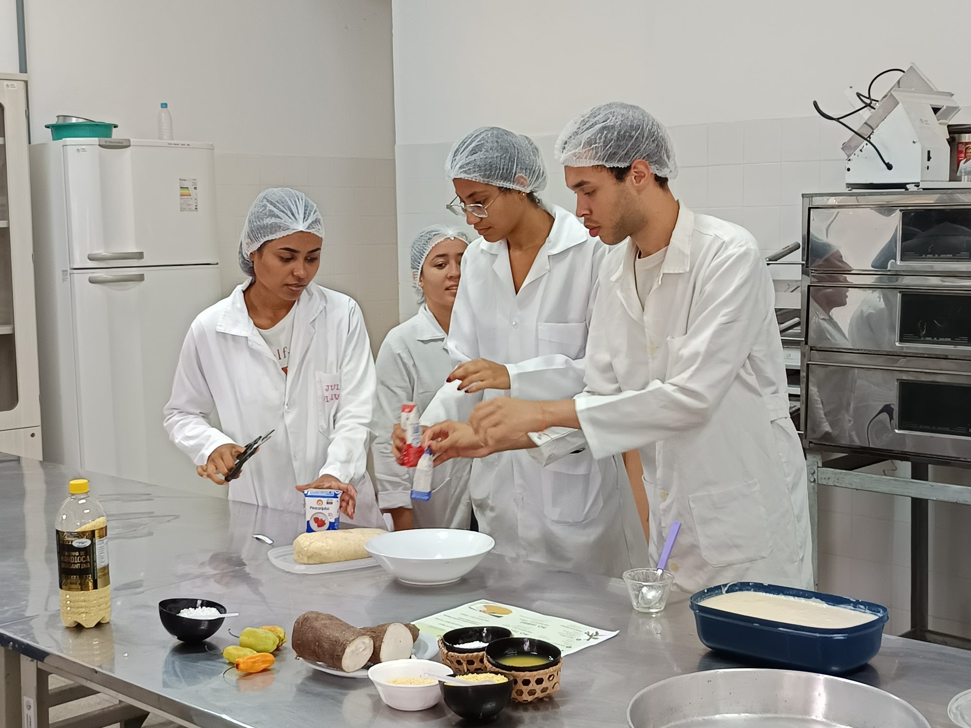O primeiro dia das atividades da Semana Nacional de Ciência e Tecnologia (SNCT) na Universidade Federal Rural do Rio de Janeiro (UFRRJ) foi marcado pela oferta do minicurso “Chemica Brasilis: Ciência e Cultura nas Culinárias Amazônica e Paraense”, realizado nesta segunda-feira (14/10) no Laboratório de Panificação do Colégio Técnico da UFRRJ (Ctur).