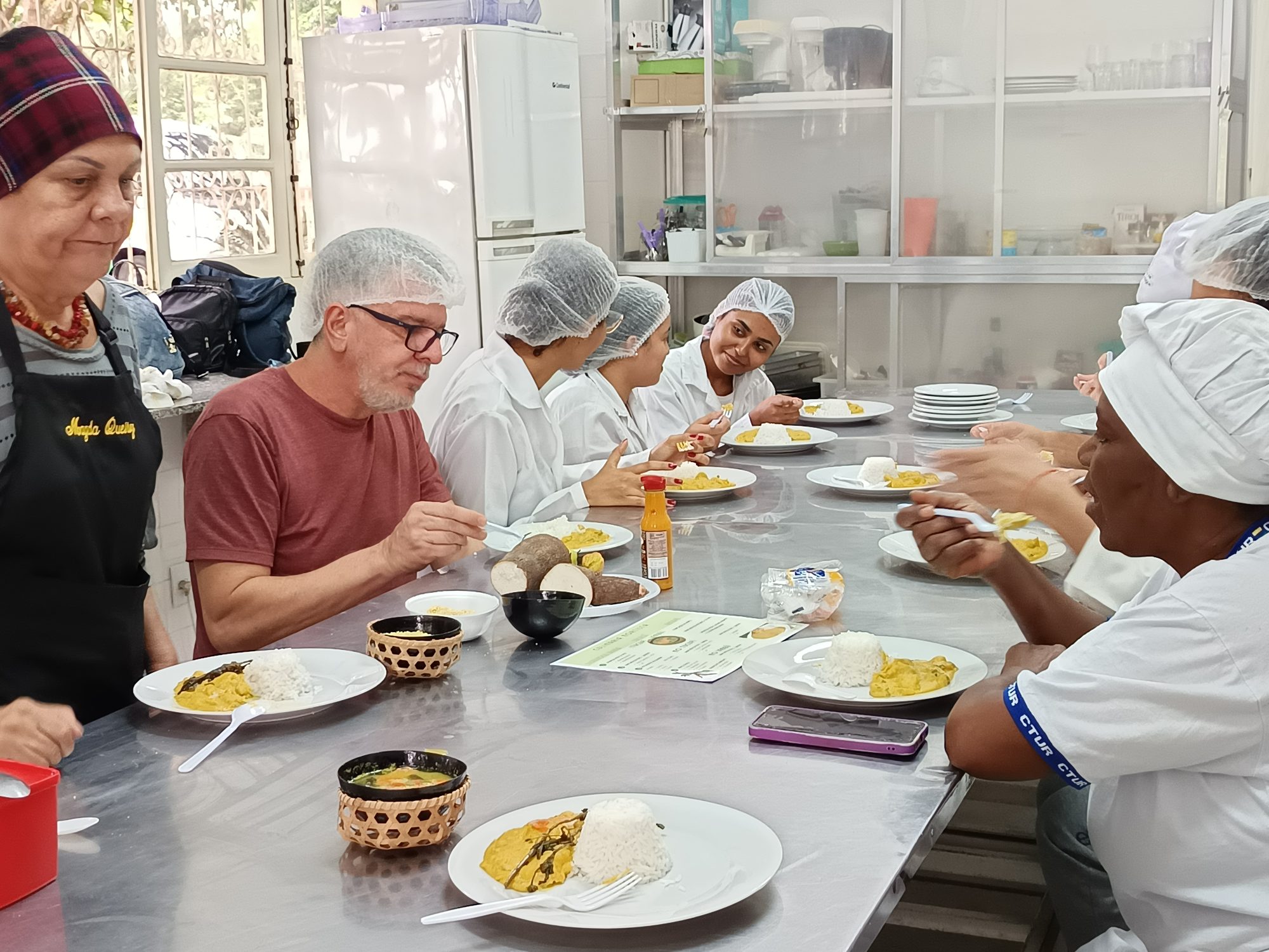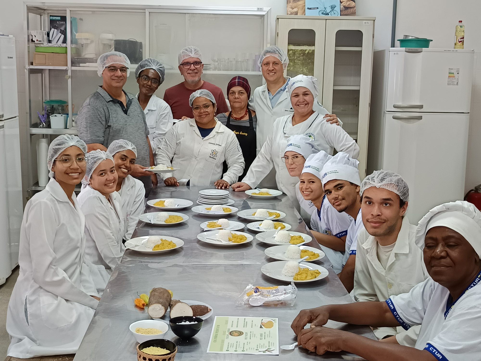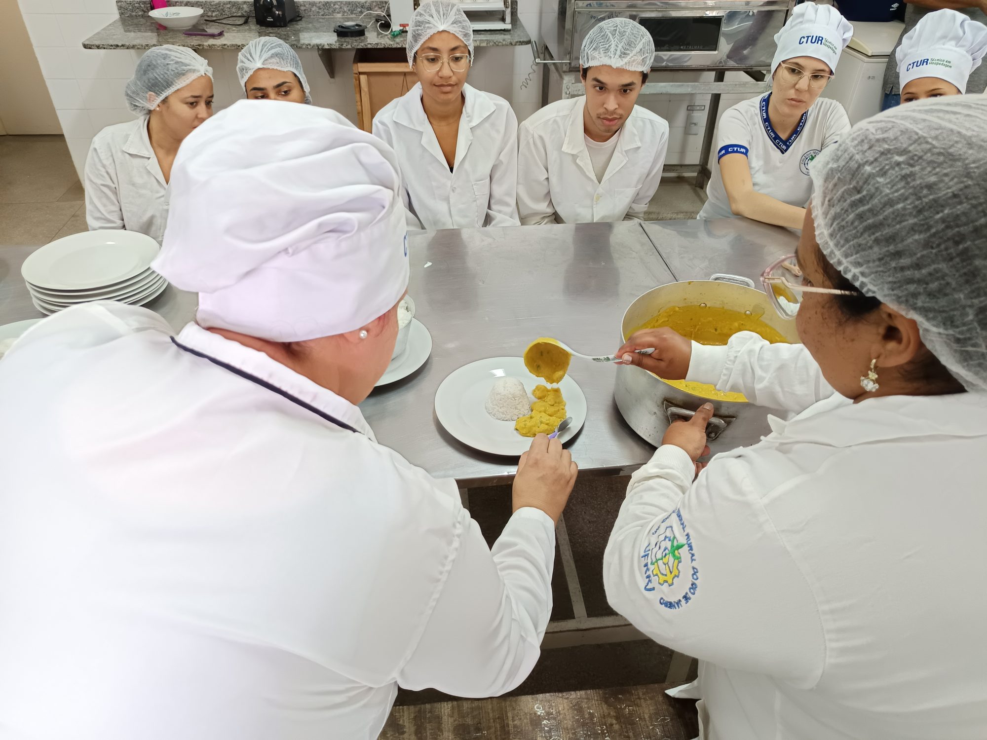 “A experiência foi muito boa, muito gratificante. Provei e, em questão de sabores, é muito bom conhecer novidades.”, relatou Aline, discente de Hotelaria e participante do minicurso. Além de auxiliar no preparo, os inscritos puderam degustar os pratos.