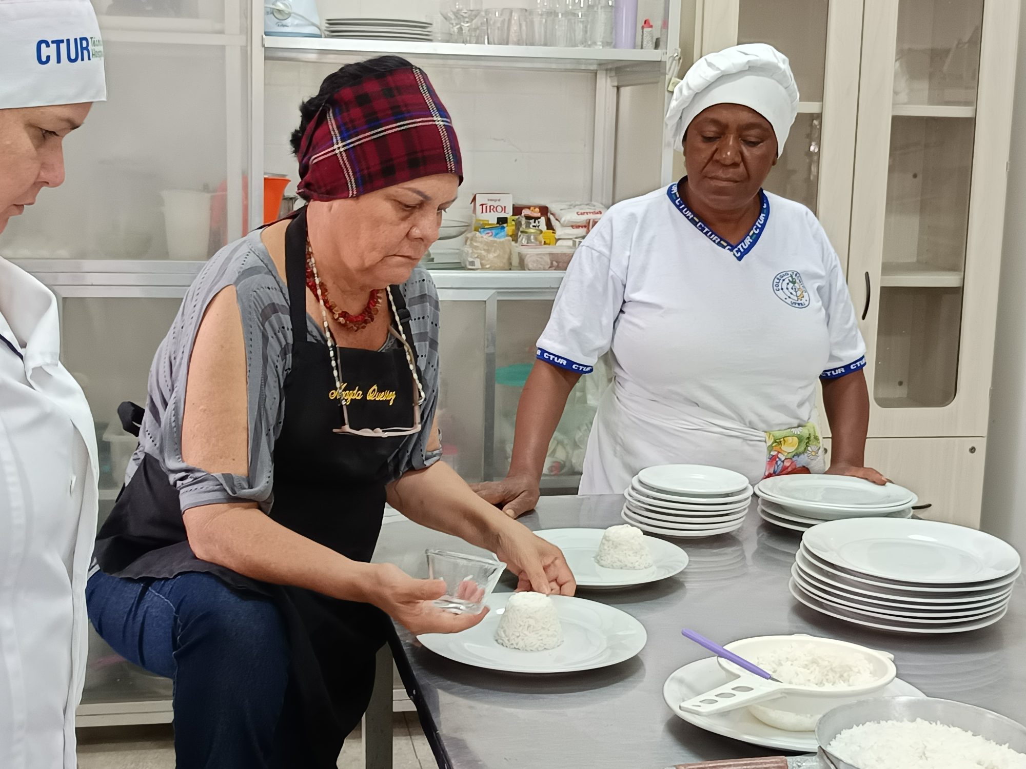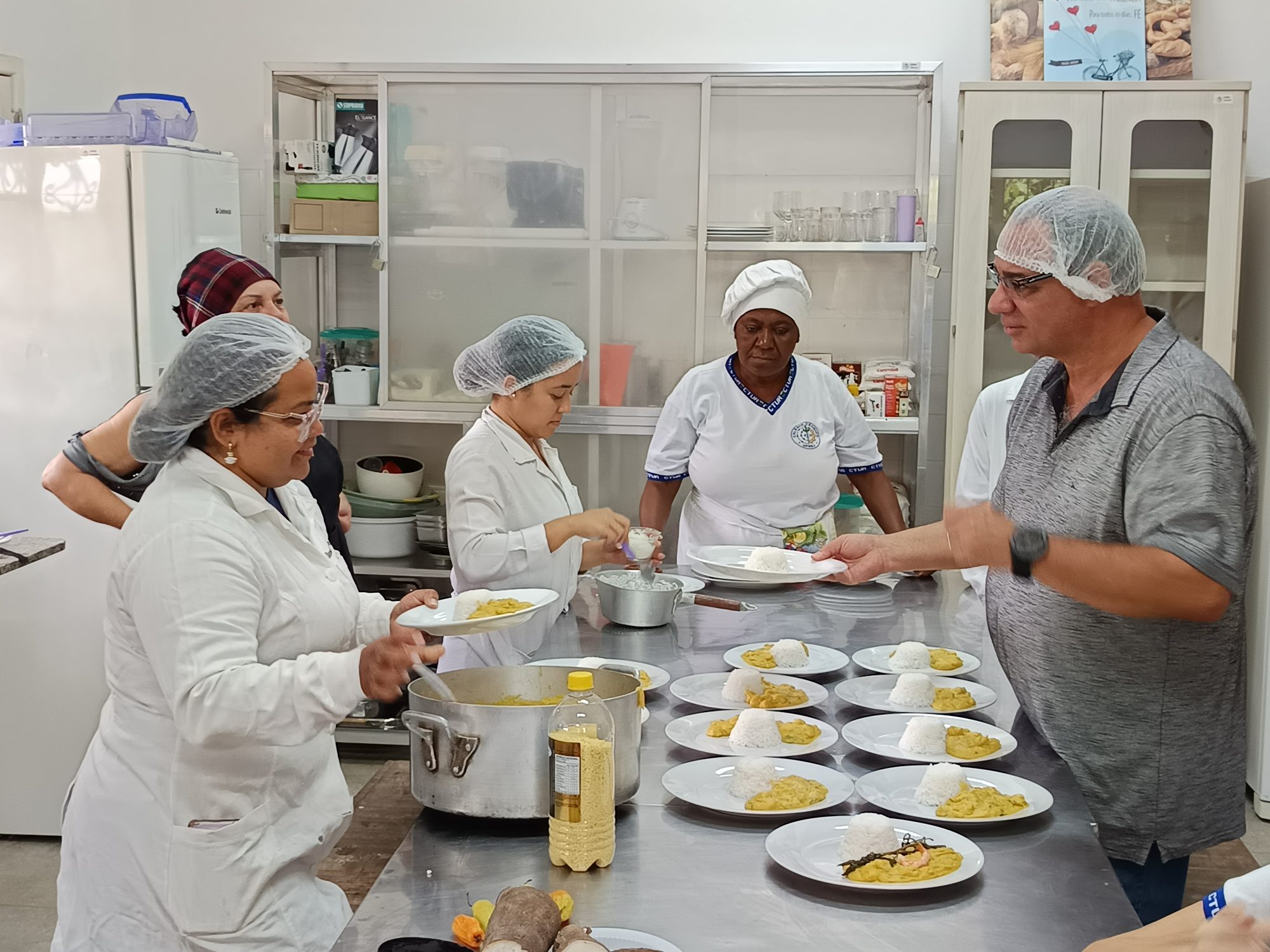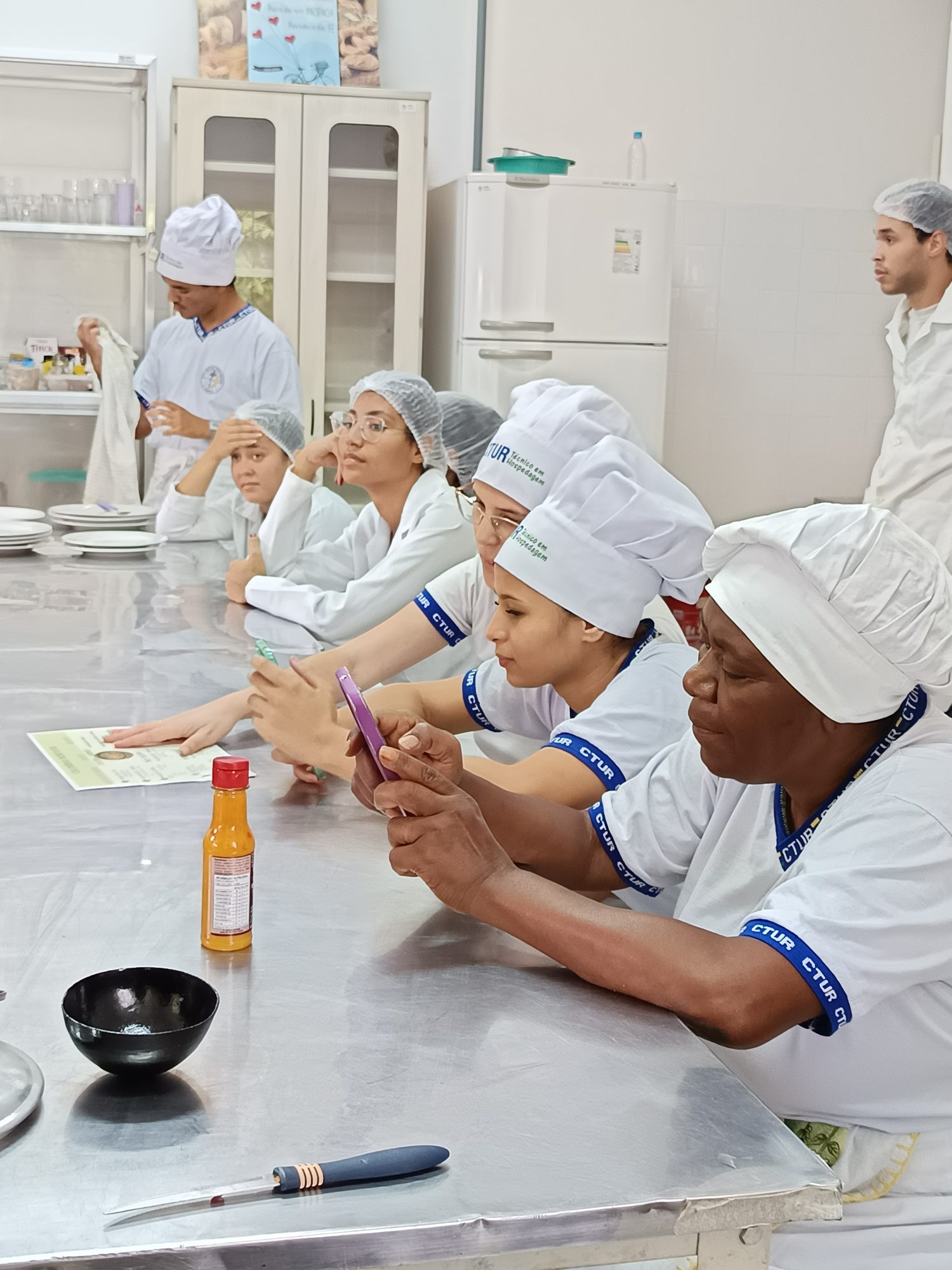 “A experiência foi muito boa, muito gratificante. Provei e, em questão de sabores, é muito bom conhecer novidades.”, relatou Aline, discente de Hotelaria e participante do minicurso. Além de auxiliar no preparo, os inscritos puderam degustar os pratos.