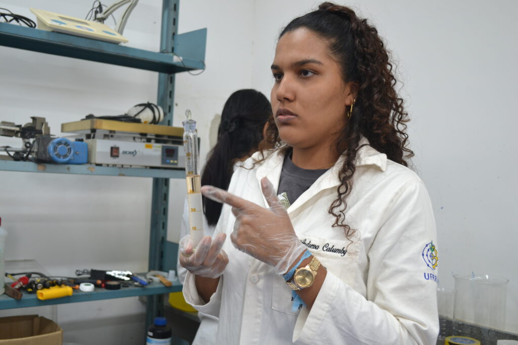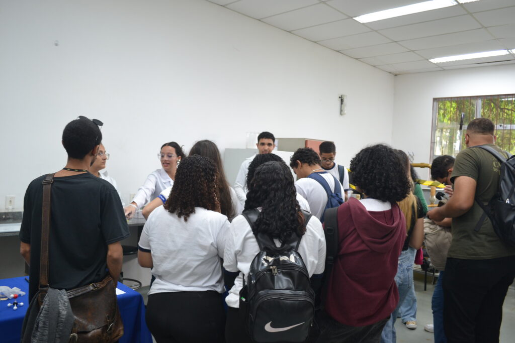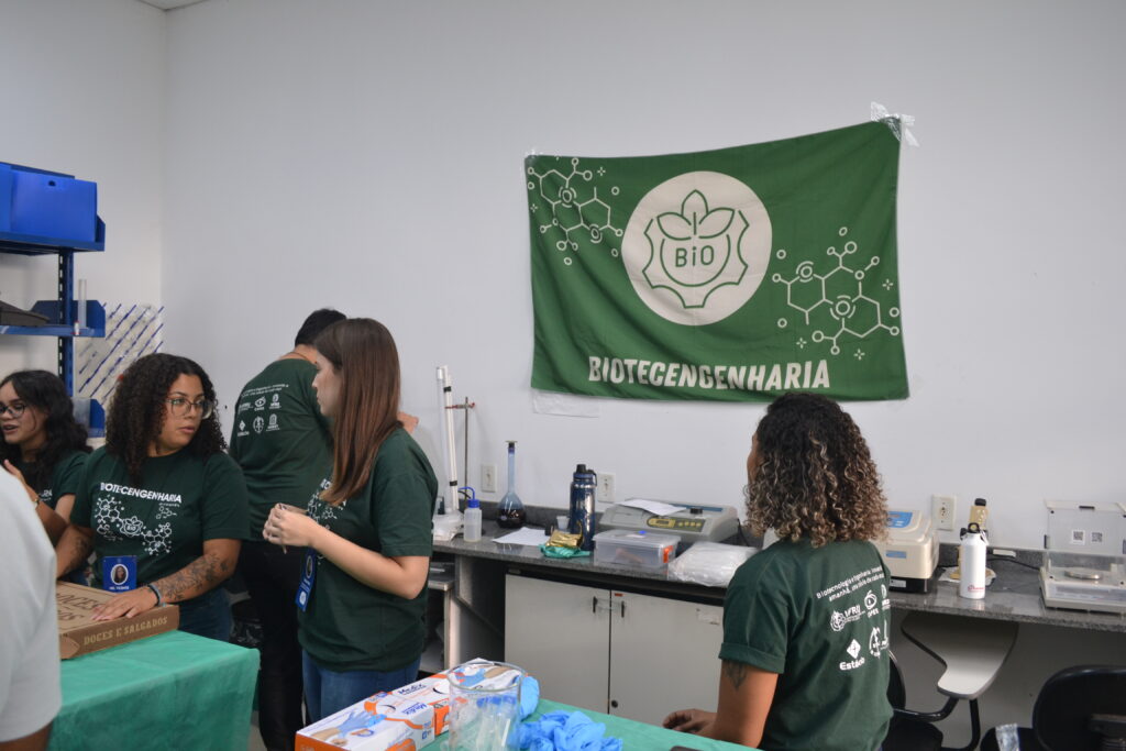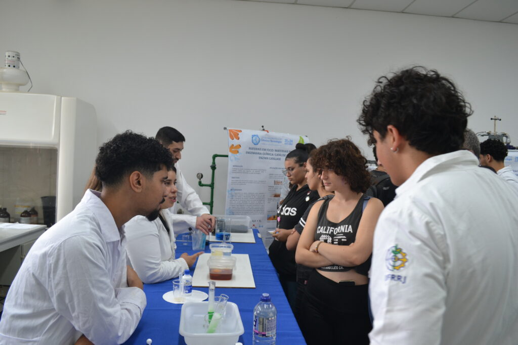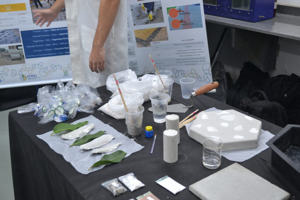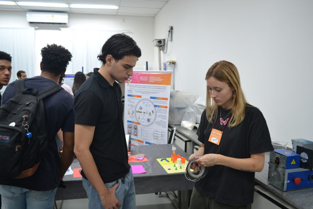 Já no Departamento de Engenharia Química (DEQ/IT), pela tarde, aconteceu a feira de exposição “Materiais em Foco”, que contou com mostras científicas dos cursos de Engenharia Química e Engenharia de Materiais. O evento foi planejado por professores de ambos os cursos, para compartilharem diferentes atividades, demonstrativas e expositivas, de diversas especificidades e profissionais dessas Engenharias.