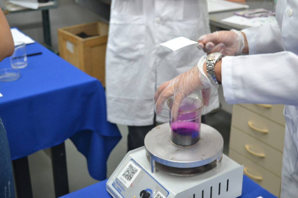 Para essa dinâmica interativa e intuitiva, os alunos de Engenharia Química realizaram atividades como: contaminação de combustível com metanol, revelação de impressão digital por meio de iodo, que foi usado o carvão ativado para essa demonstração e também foi utilizada uma técnica para separar compostos químicos presentes em uma amostra.