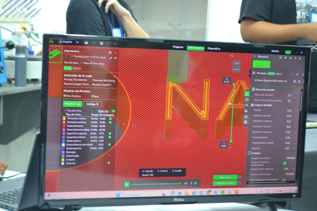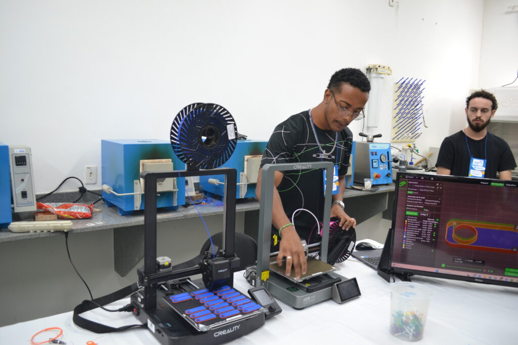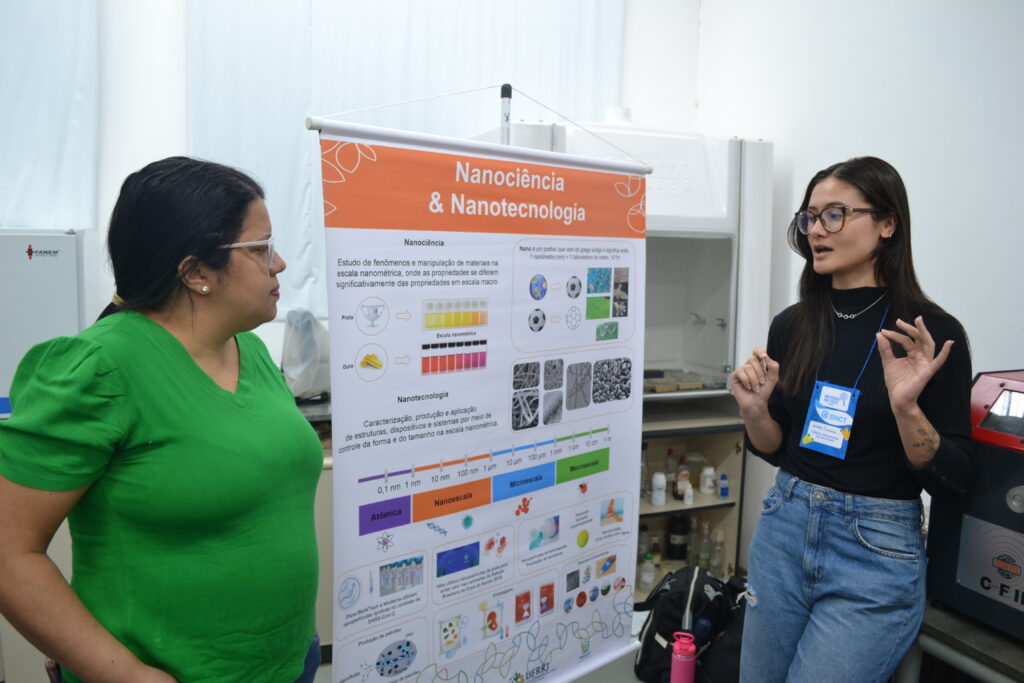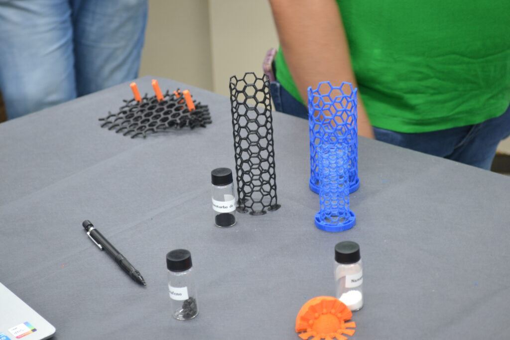 Os participantes também tiveram a oportunidade de assistirem apresentações sobre Nanotecnologia, assim podendo ver de perto o funcionamento de uma impressora 3D. A mostra foi montada pelo Laboratório de Nanotecnologia, Cerâmicas e Compósitos da UFRRJ. Nela, os alunos de Engenharia de Materiais explicaram sobre a impressora 3D, além de enfatizarem como a nanotecnologia ajuda a reforçar a máquina, pois a mesma não é a base, e sim um filamento para complemento de construção do aparelho.