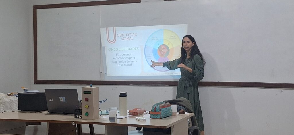 Pela manhã, a palestra “Semáforo Bioclimático para Galinhas de Postura” foi ministrada pela professora Vânia Rosal Guimarães e pelo estagiário Igor Ferreira Oliva, ambos do curso de Engenharia Agrícola e Ambiental da UFRRJ.