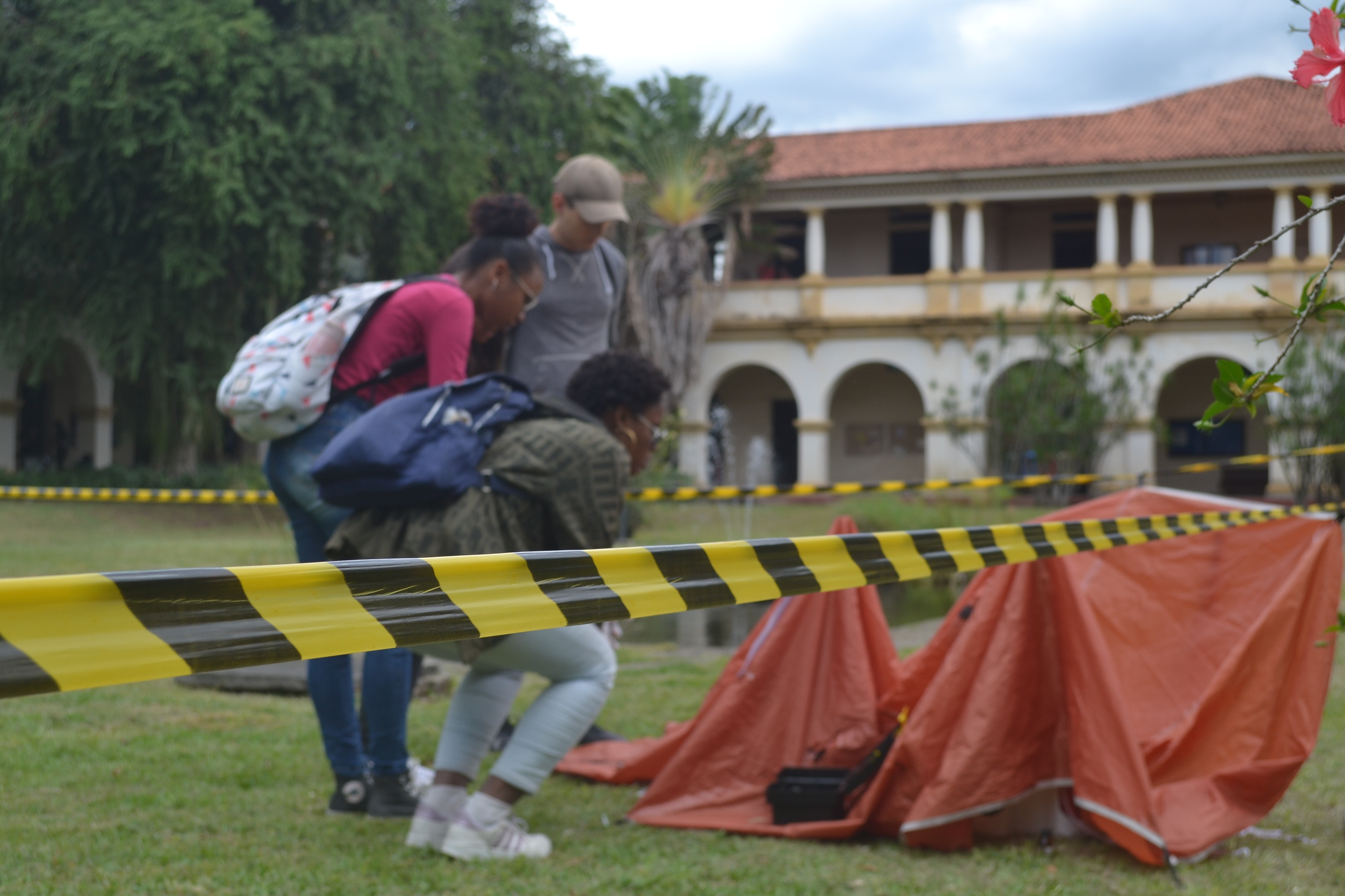 “A ‘Cena de Crime’ é uma das vertentes do nosso projeto que visa levar a ciência até as escolas públicas e privadas de regiões próximas a nossa Universidade que não têm acesso à instituição nem à ciência como um todo. Então tentamos viabilizar o processo de ensino de química, física e biologia dentro das escolas”, explica Talyson Henrique, um dos organizadores e integrante do projeto.