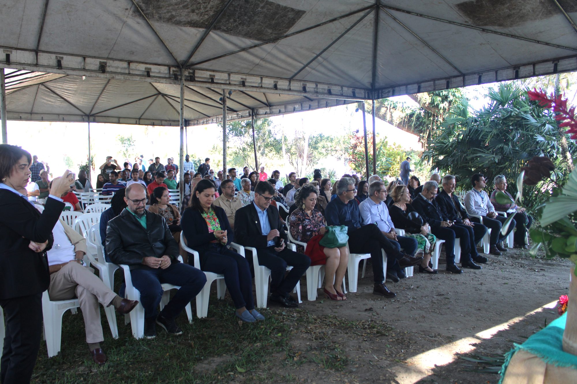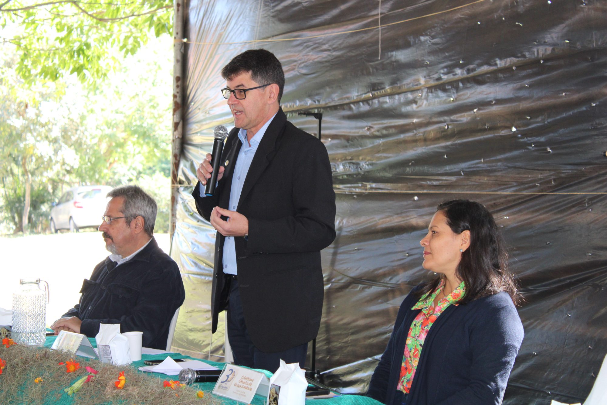 Na mesa de abertura do evento, assentos garantidos para os parceiros. O reitor da UFRRJ, Roberto Rodrigues, esteve ao lado da chefe-geral da Embrapa Agrobiologia, Cristhiane Amâncio; do presidente da Pesagro-Rio, Paulo Renato Marques; e do diretor do CTUR, Luiz Carlos Estrella. Dando início às atividades, Anelise Dias – professora do Instituto de Agronomia (IA/UFRRJ) e integrante do Comitê Gestor do Sipa – fez um resumo da trajetória da Fazendinha.