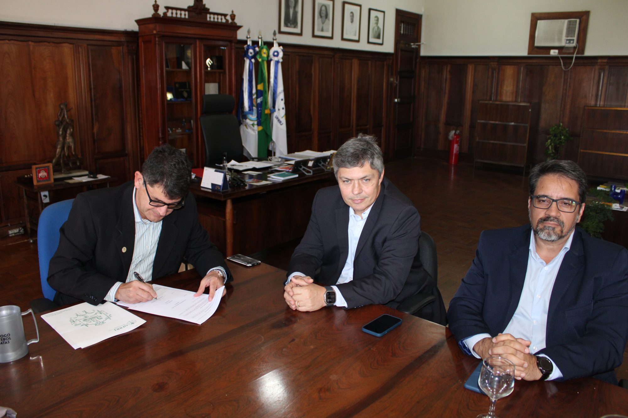 Também estiveram presentes à assinatura do Termo o diretor do ICE, Robson Mariano da Silva; o presidente da Fundação de Apoio a Pesquisa Científica e Tecnologia da UFRRJ (Fapur), Armando Sales; a vice-presidente da Fapur, Clarissa Oliveira; e o presidente da Agência de Inovação da UFRRJ, Rômulo Cardoso Valadão. Pelo Proderj participaram o vice-presidente de Estratégia, Governança e Inovação, Luiz Galhardo; o diretor de Planejamento, Estratégia e Projeto, Murilo Richulino; e a gerente de Projetos Estruturantes, Louize Oldrini.