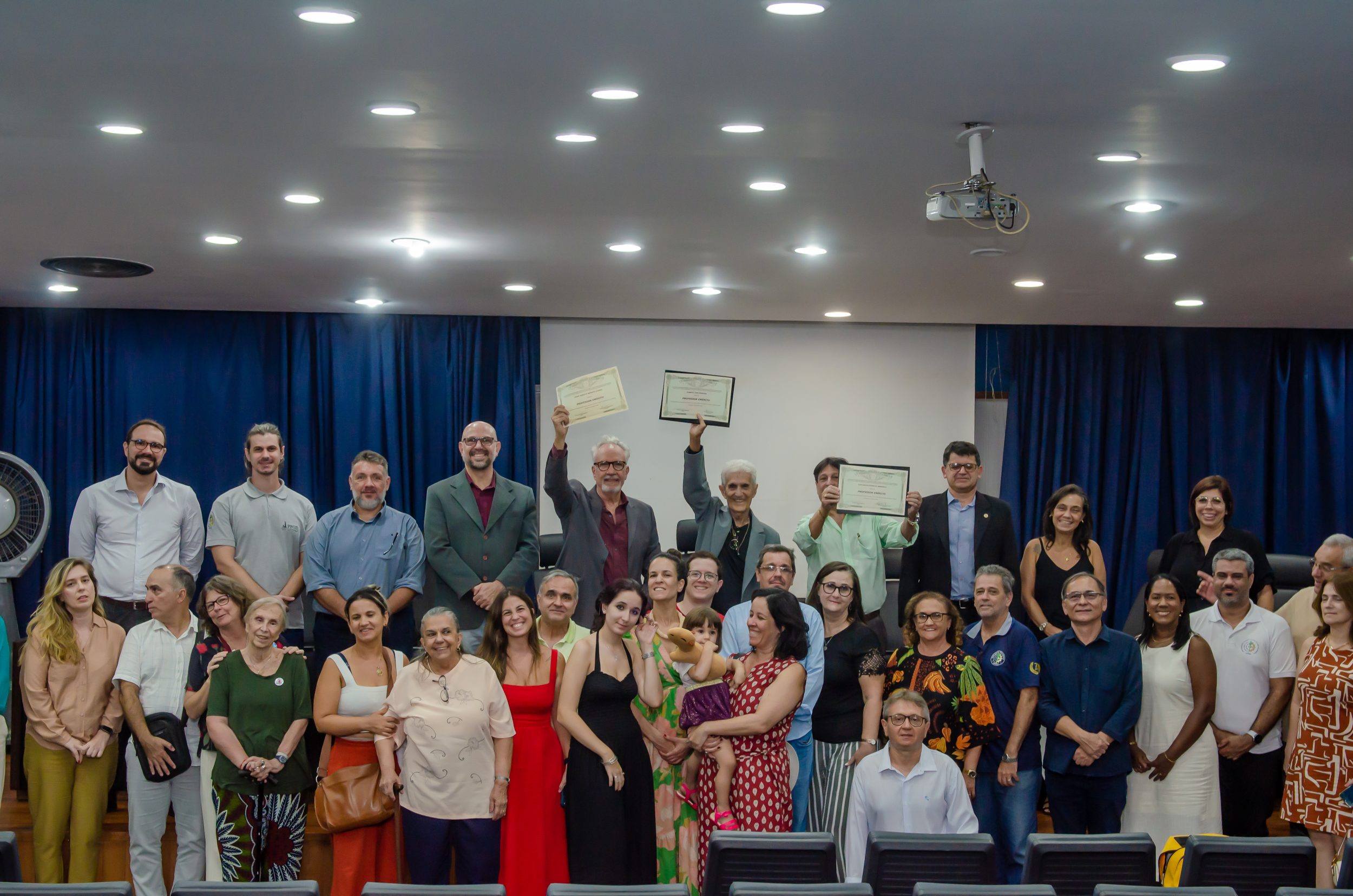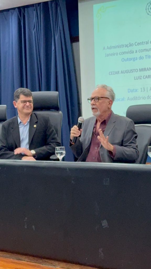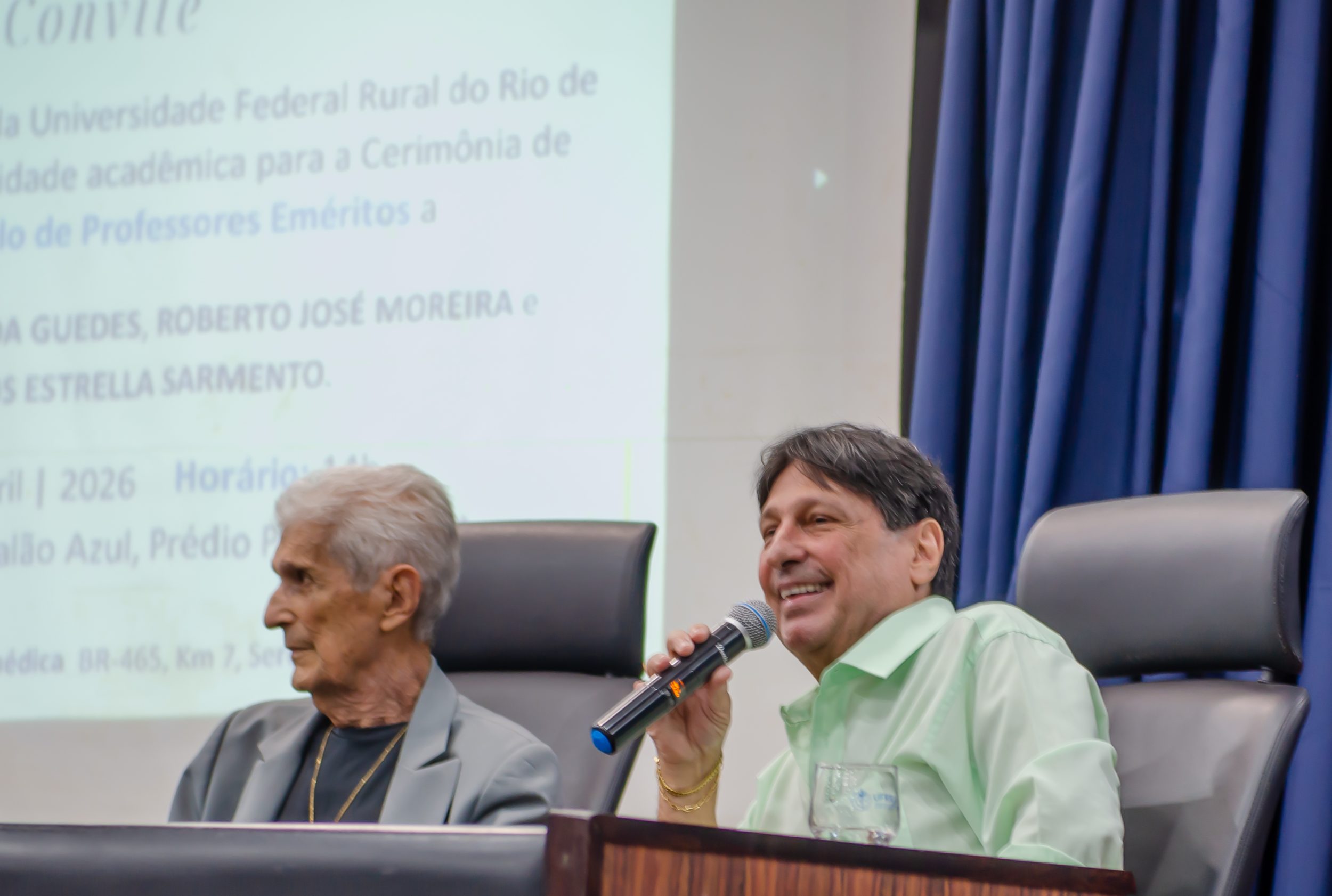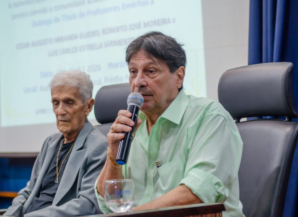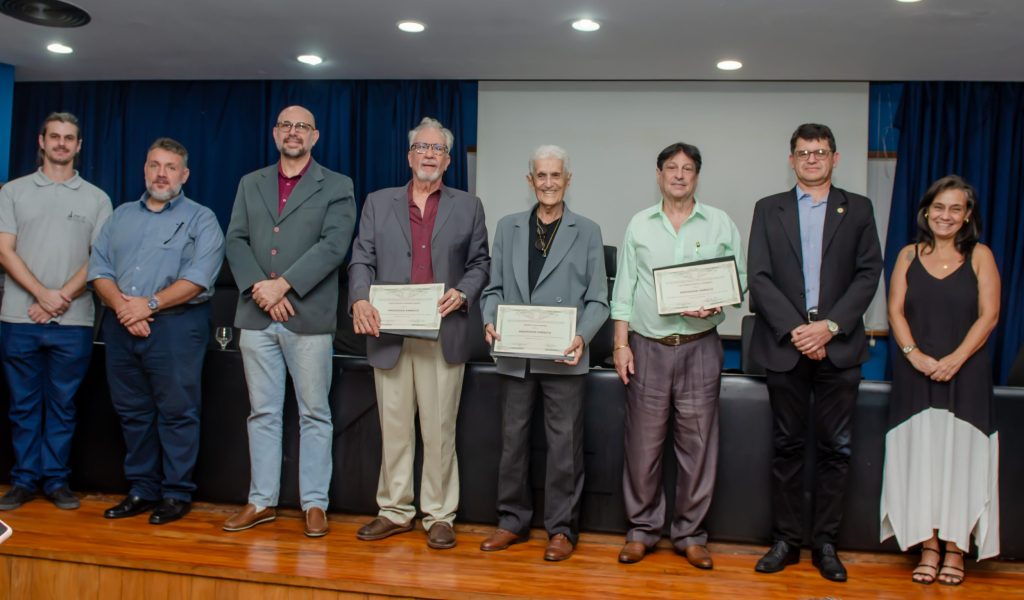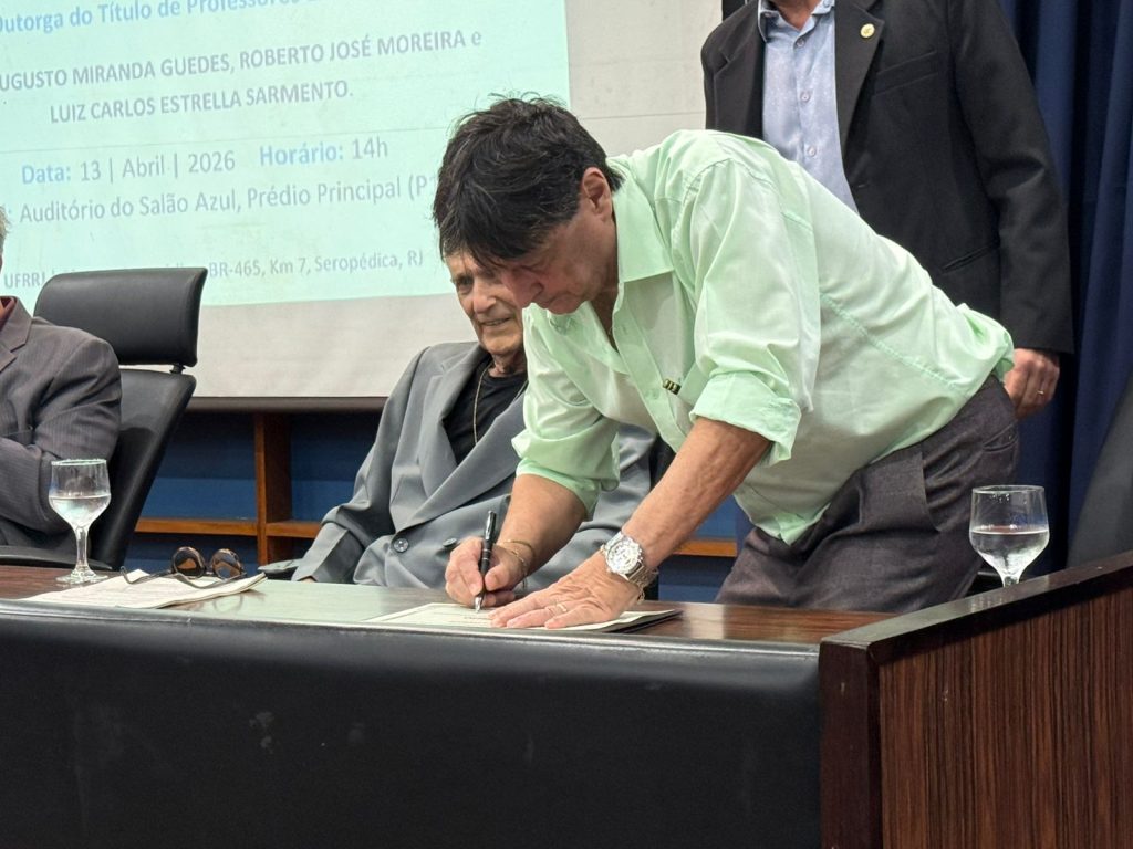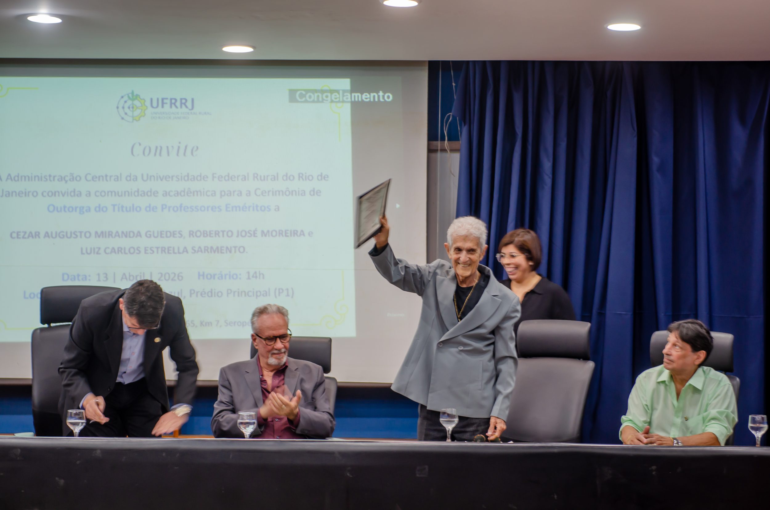 Na última segunda-feira (13/04), a Administração Central da Universidade Federal Rural do Rio de Janeiro (UFRRJ) realizou a cerimônia que concedeu o título de professores eméritos a Cezar Augusto Miranda Guedes, Roberto José Moreira e Luiz Carlos Estrella Sarnento. A honraria é dada a professores aposentados em reconhecimento a contribuições notáveis no ensino, pesquisa e extensão da instituição. O evento foi realizado no Auditório Professor Gusmão, no Pavilhão Central da UFRRJ.
