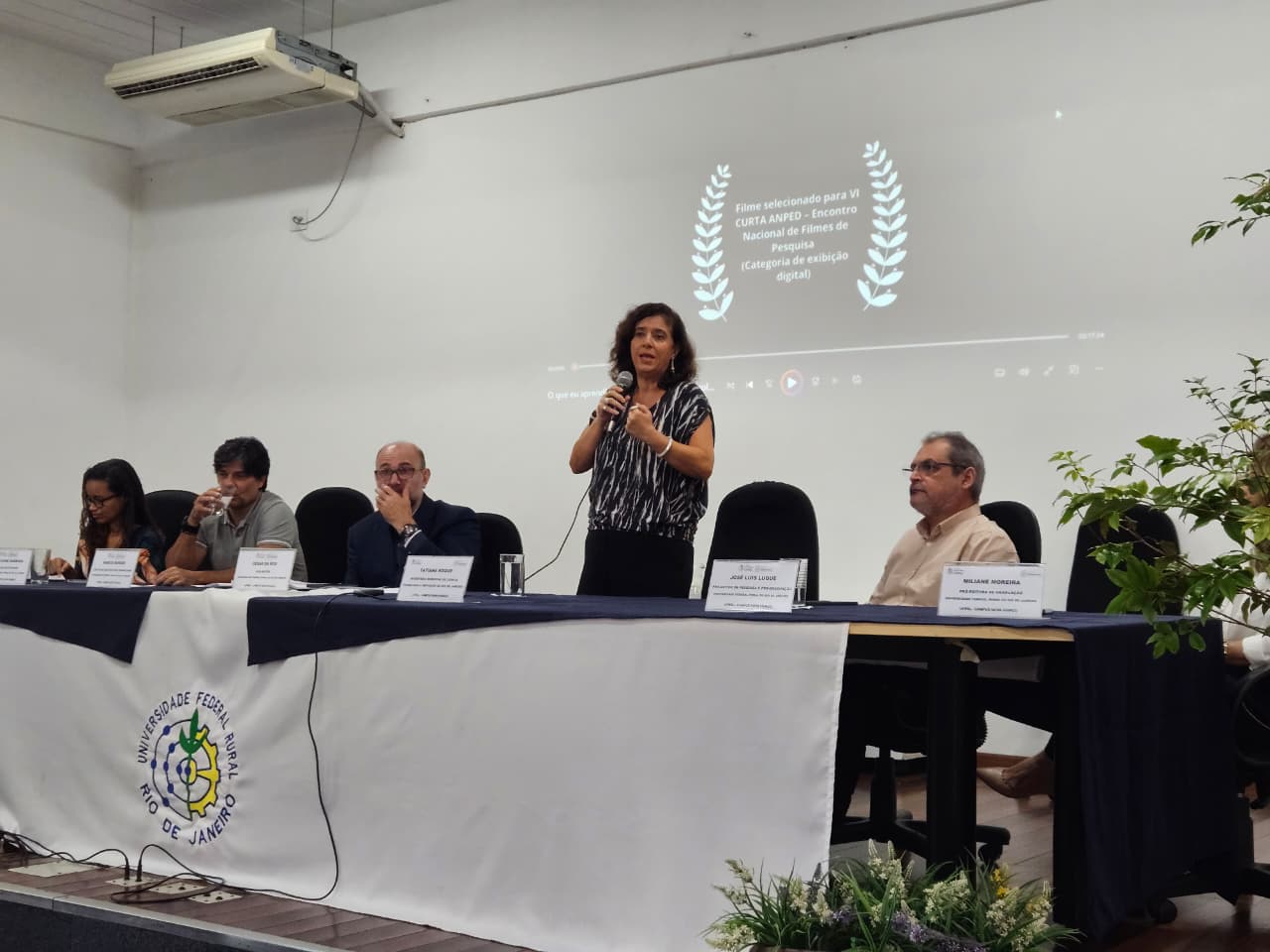 Em seguida, a pró-reitora de Extensão Maria Ivone Barbosa enfatizou o compromisso da UFRRJ com o desenvolvimento dos territórios onde atua: “A ciência que aqui se faz tem sentido quando contribui para melhorar a vida das pessoas, melhorar os indicadores sociais e desenvolver territórios. Celebramos a ciência que pulsa em cada laboratório, em cada espaço da nossa universidade, que é gigante e viva com a comunidade e com as ações de extensão”, ressaltou.