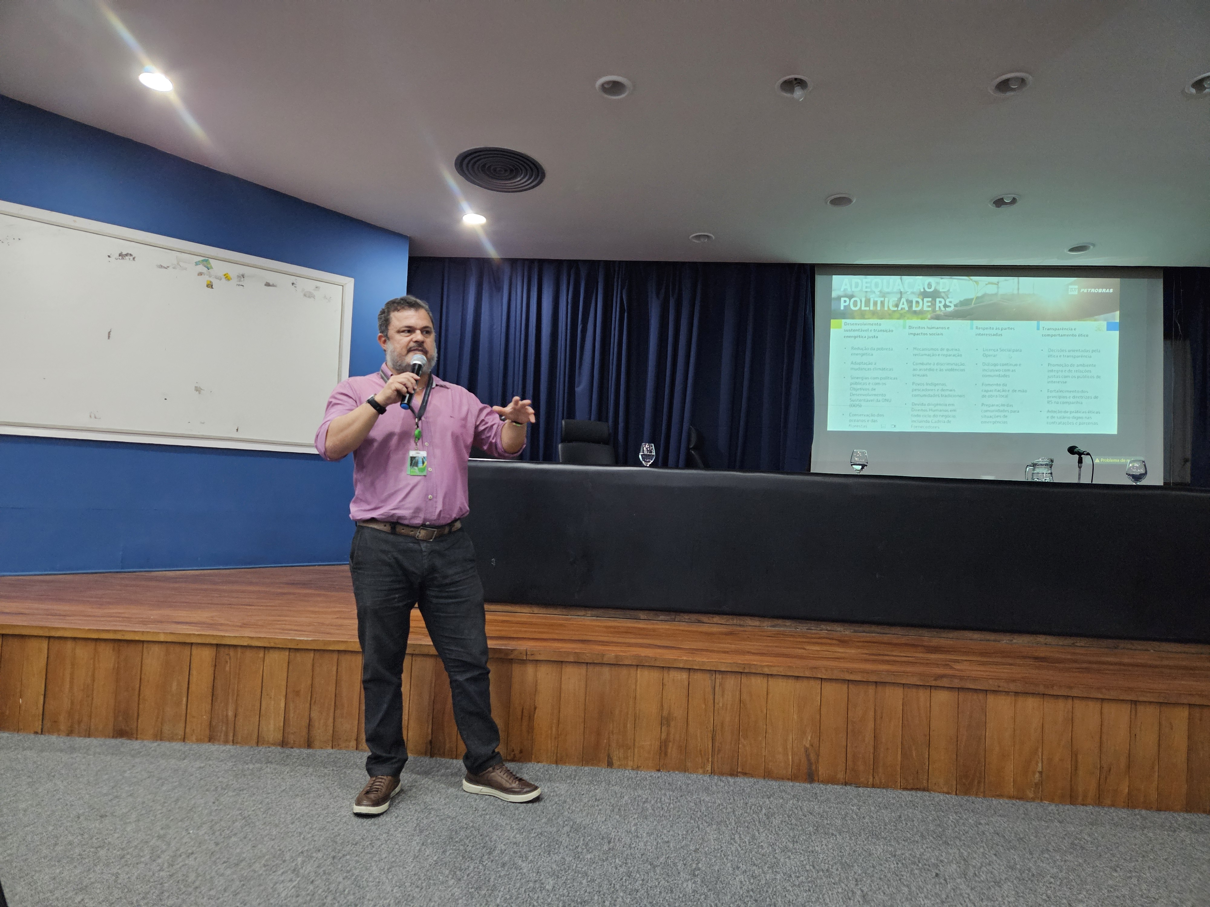 Na primeira parte do encontro, Edson Cunha apresentou a estrutura da área de Responsabilidade Social dentro da Petrobras, destacando que a empresa atua em diversos eixos — desde a defesa dos direitos humanos e a prevenção de riscos sociais e ambientais até o desenvolvimento de projetos socioambientais para comunidades próximas às suas unidades. Ele explicou que essas iniciativas também envolvem a promoção da diversidade, da inclusão e a atenção às minorias.