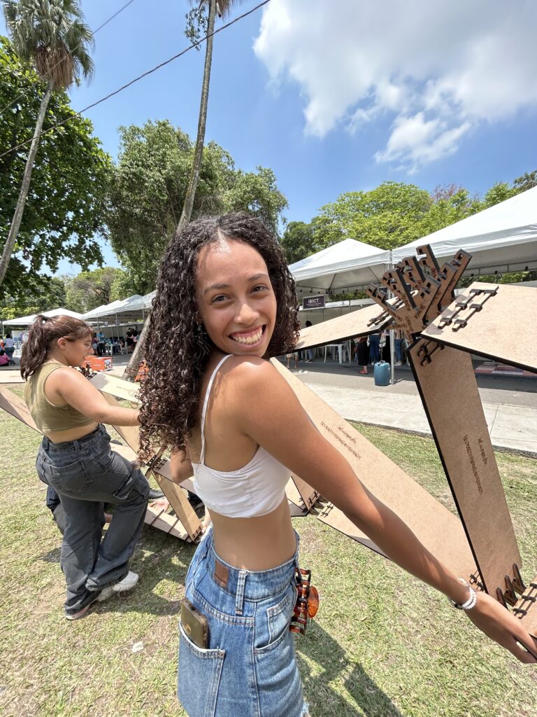 Sobre a instalação efêmera de MDF, o professor Juarez Moara Santos Franco, do Departamento de Arquitetura e Urbanismo e coordenador do LOGIFAB, explicou que a participação dos estudantes no festival trouxe impactos diretos para a formação acadêmica. “Nós fizemos a montagem de uma instalação efêmera de MDF, produzida por modelagem paramétrica e fabricação digital. A participação dos estudantes atingiu os dois objetivos que nos propusemos: apresentar sua produção intelectual a um público amplo e permitir uma interação criativa com representantes de outras instituições,” afirmou.