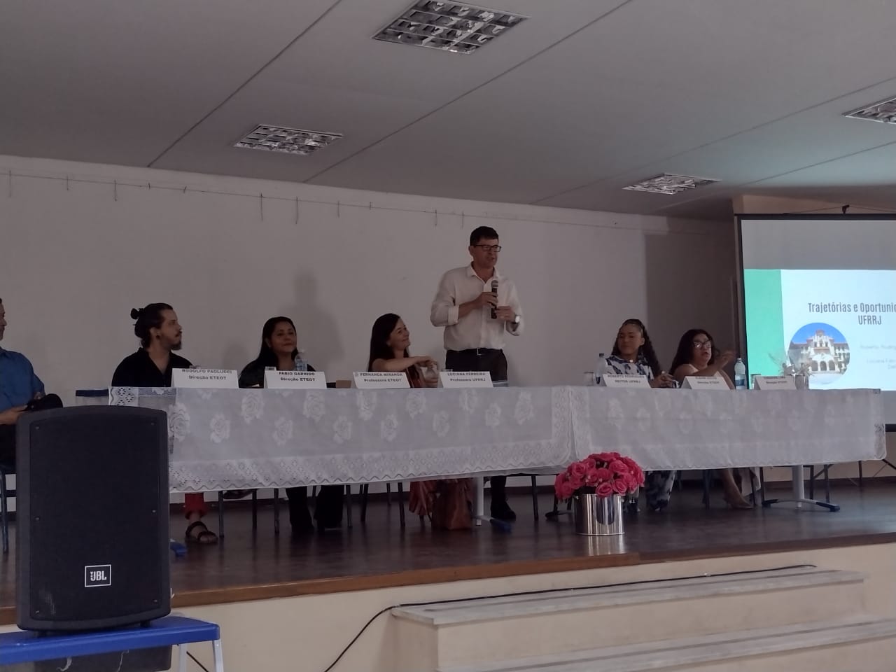 Os discursos foram acompanhados por um vídeo institucional e por uma apresentação que detalhou as formas de ingresso em universidades públicas, a importância do Ensino Superior e os programas de bolsas estudantis disponíveis na UFRRJ.
